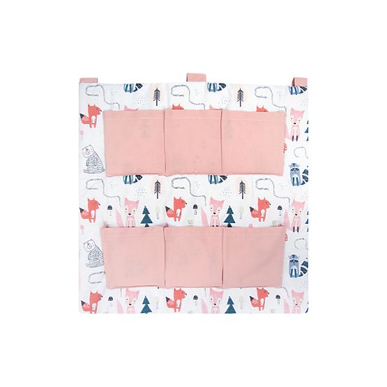 Vreckár zdobí krásny motív líšky a ich zvieracích kamarátov a vrecká sú príjemné ružovej farby. Vďaka univerzálnym pastelovým farbám sa bude skvele hodiť do izbičky akéhokoľvek typu.