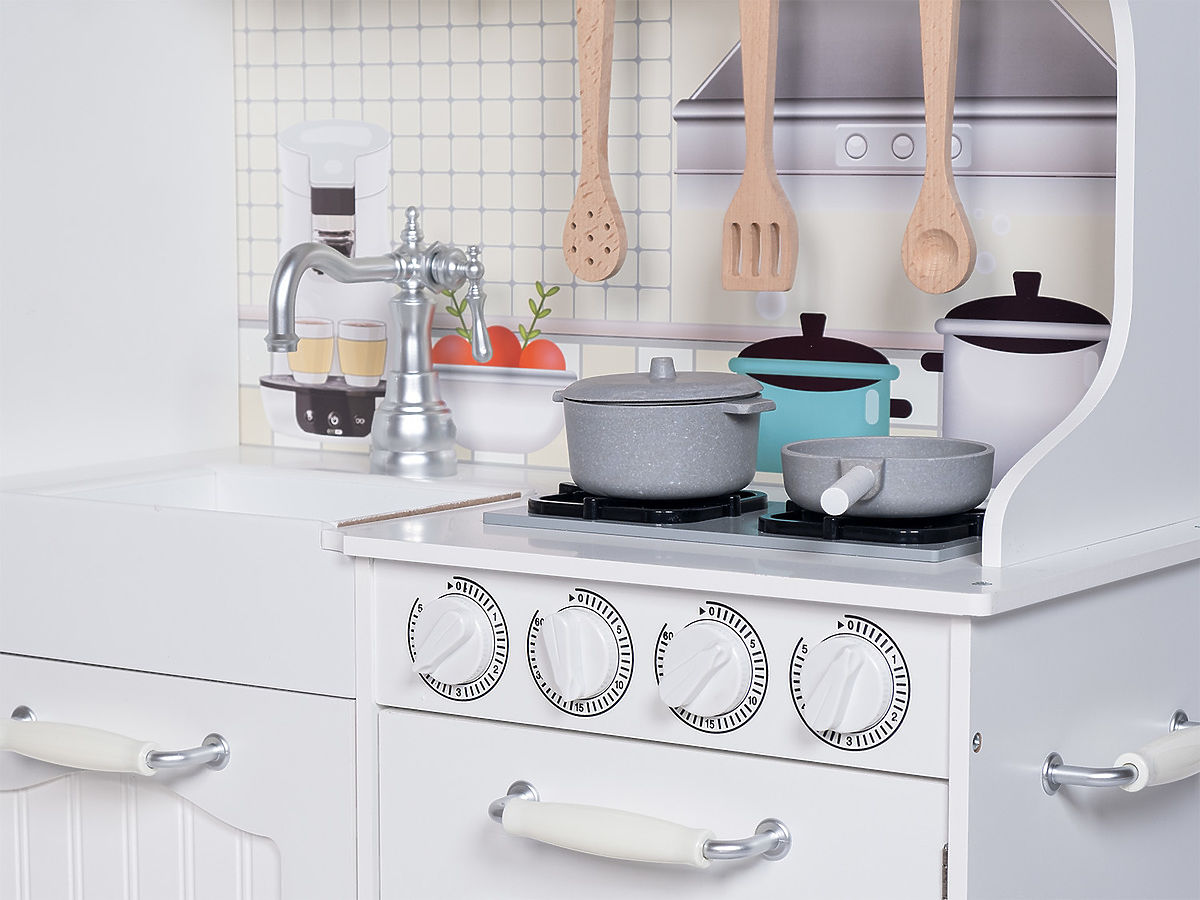 Moderná drevená kuchynka Bianca XXL s množstvom doplnkov nadchne malých aj veľkých kuchárov.