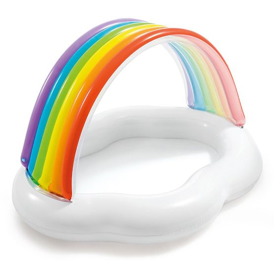 Nafukovací bazén má tvar bieleho obláčika s farebnou strechou pripomínajúcou dúhu. Bazén je veľmi bezpečný, jeho nafukovacie steny poskytujú pohodlnú oporu a ochránia batoľa pri prípadnom páde. Strieška umiestnená hore ich ochráni pred slnečným žiarením a zaistí bezpečnú hru vo vode.