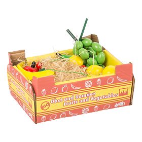 Všetci malí farmári a farmárky aj predavači a predavačky chcú ponúkať len to najčerstvejšie a najšťavnatejšie ovocie! Pevná a podrobne dekorovaná kartónová debnička je vystlaná papierovou slamou a vyplnená sýto sfarbenými maketami ovocia. Možno ju uplatniť samostatne aj ako doplnok kuchynky, obchodu, či stánku. Hlavné vlastnosti: kartónová debnička s 11 ks drevených makiet ovocie vhodné ako doplnok kuchynky, obchodu, či stánku