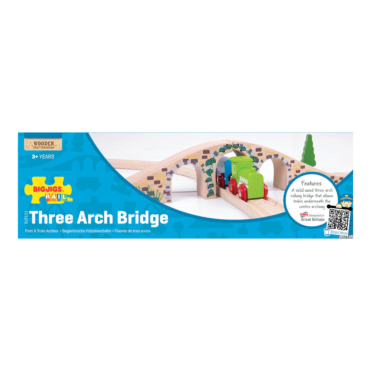 Ak potrebujete prekonať vlakom rieku, cestu alebo kríženie s inou dráhou, potom budete potrebovať práve tento troj-oblúkový most. S detailmi kamenných tehál po jeho stranách a kvalitnou povrchovou úpravou je tento most ceneným doplnkom každej drevenej vláčikodráhy. Súčasťou balenia je všetko podľa obrázku. Hlavné vlastnosti: Vláčikodráhy a ich príslušenstvo značky Bigjigs Rail je možné kombinovať so všetkými ďalšími drevenými vláčikodráhami na trhu. Vyrobené z kvalitných a zodpovedne získaných prírodných materiálov. Zodpovedá súčasným európskym bezpečnostným normám. Podporuje predstavivosť, obratnosť a koordináciu.