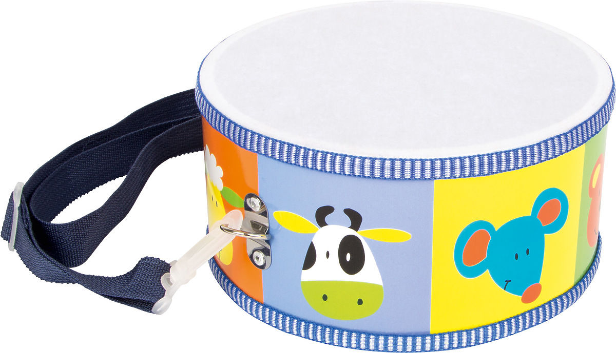 Rozprávkovo farebný bubon s roztomilými zvieracími hlavami pozýva k veselej vzbure v detskej izbe! To nie je hluk, to je hudba a radosť z pohybu na celej čiare! Tu si môžu deti precvičiť motoriku, vyšantiť sa a prebudiť záujem o hudbu! Vrátane nastaviteľného popruhu s 2 karabínkami a 2 bubienkovými paličkami (dĺžka: cca 18 cm). Hlavné vlastnosti: trénuje motoriku detínastaviteľný popruh