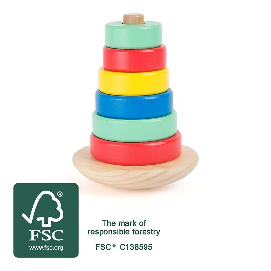 Klasická drevená motorická hračka vyrobená FSC® 100% certifikovaným spôsobom, ktorý nezaťažuje prírodu. S touto nasadzovacou a balančnou hračkou môžu deti trénovať svoje jemné motorické zručnosti úplne hravým spôsobom.