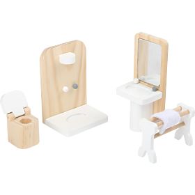 Rozmery kuchyne: 13x5,5x10 cm Rozmery toalety: 3x3x3,5 cm Vek: 3+ Materiál: drevo, látka Obsahuje 28 dielov