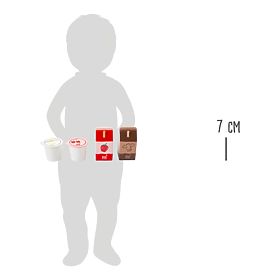 Z chladničky rovno do nákupného košíka. Tieto štyri drevené mliečne produkty sú ideálnym doplnkom detských kuchyniek alebo predajných stánkov. Okrem jahodového je tu aj kakaové mlieko, obe so slamkou. Ďalej dva jogurty, vanilkový a čerešňový. Realistická hračka, ktorá sa deťom bude určite páčiť. Pevné drevo zaručuje dlhotrvajúcu kvalitu.