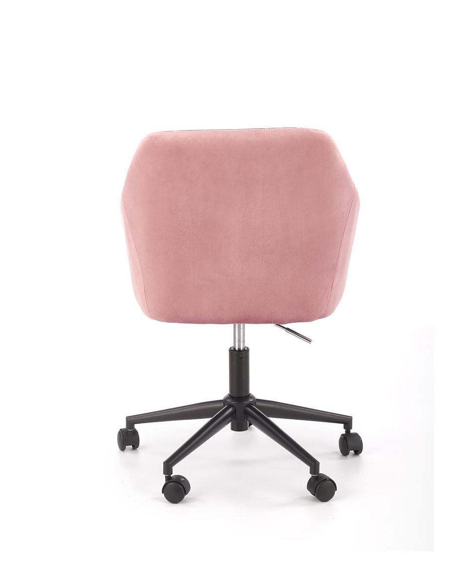 Sedák aj operadlo stoličky sú čalúnené na dotyk príjemnou, zamatovou látkou v ružovej farbe.