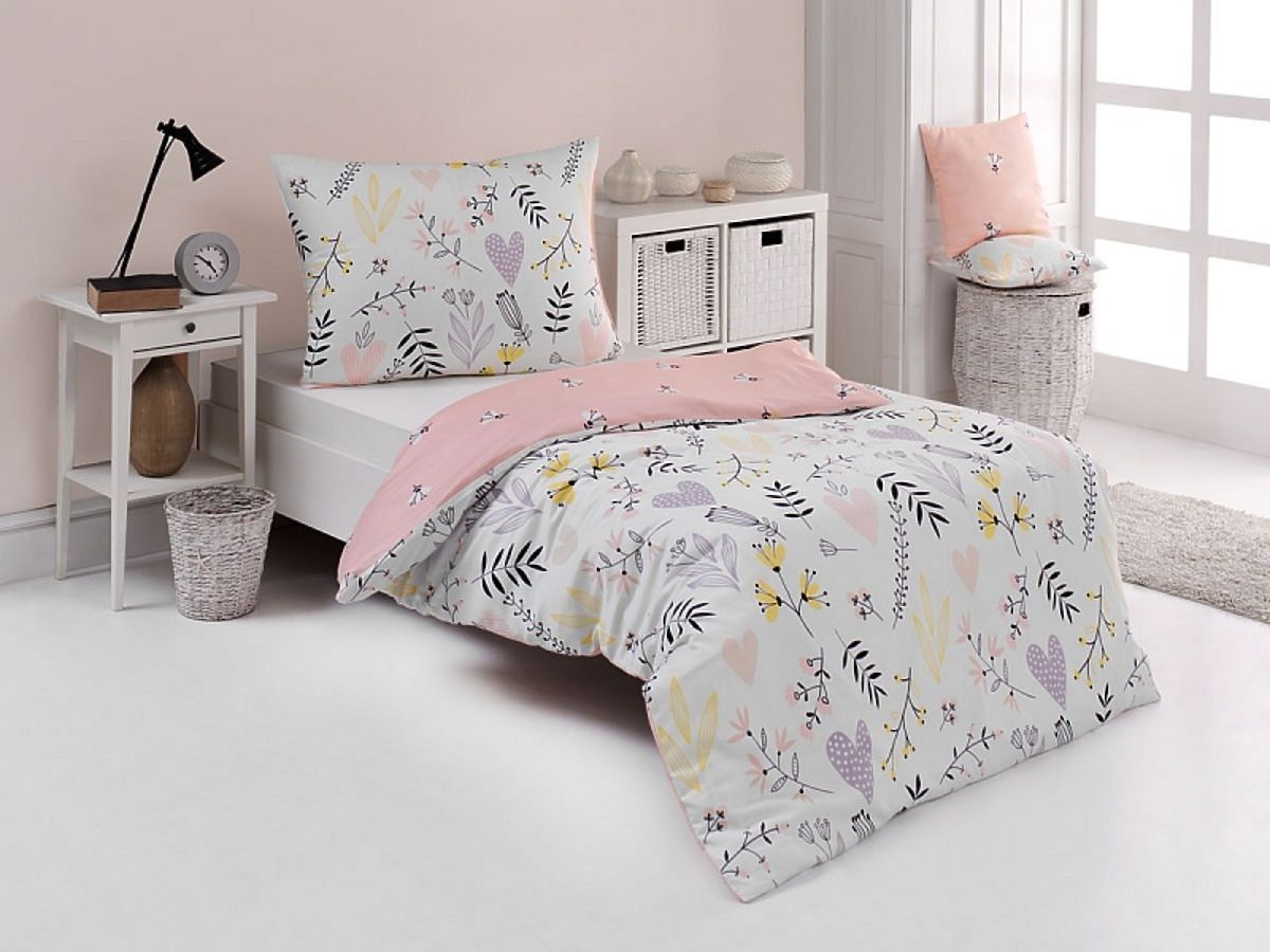Nežné obliečky s kvetinovým vzorom budú pre malé princezné očarujúcim doplnkom v jej malej komnate. Vrchnú stranu obliečky zdobia na bielom podklade decentné kvietkové vzory so srdiečkami. Na spodnej strane sa nachádza kvetinový motív na ružovom podklade.