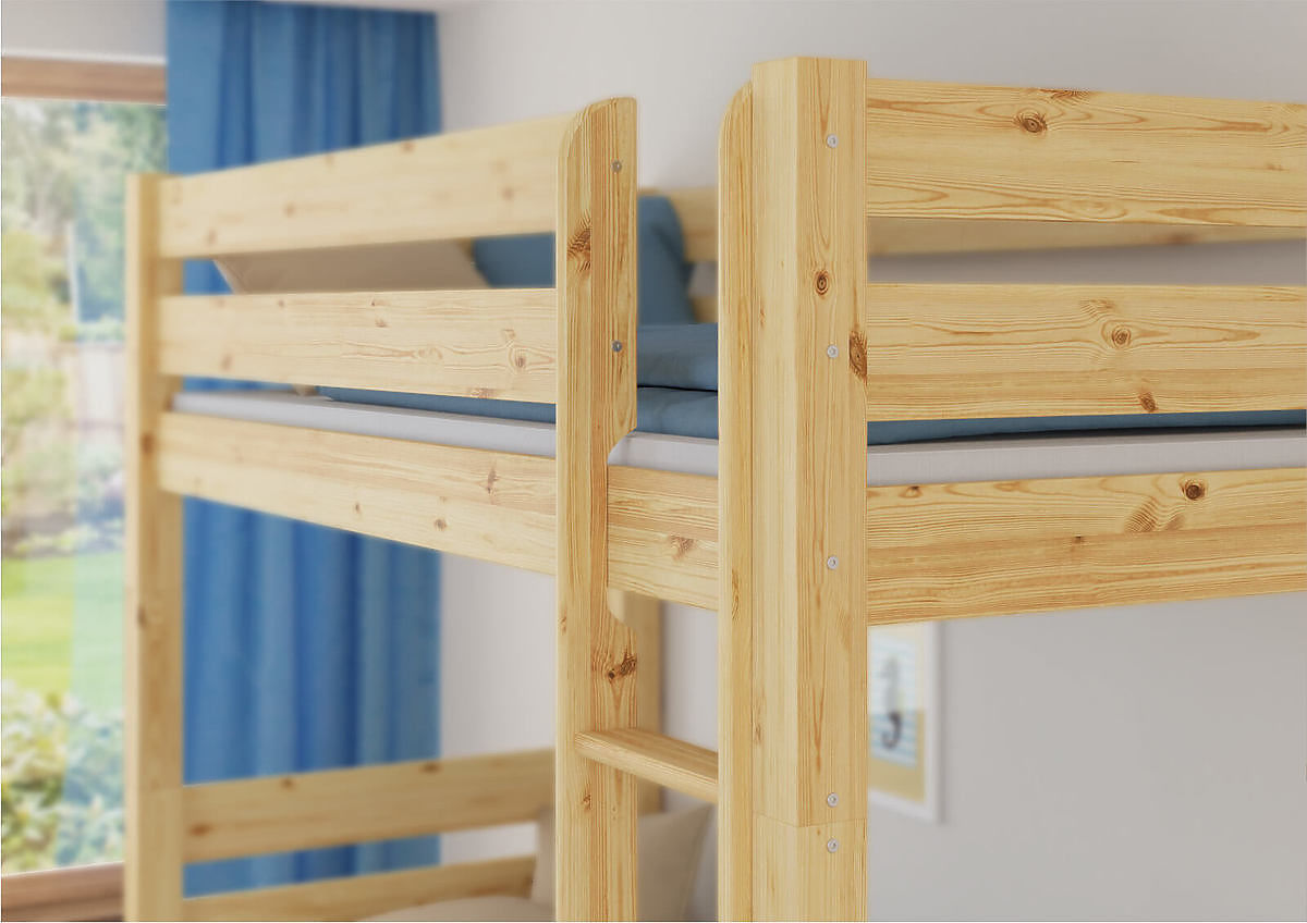 Praktická poschodová posteľ Josh v prírodnej farbe je osvedčeným riešením do izieb tam, kde je potrebné šetriť priestor. Horné lôžko je vybavené veľmi vysokým zábradlím proti vypadnutiu, detská vynaliezavosť je tak s touto posteľou v bezpečí. V prípade prestavby izby, posteľ umožňuje tiež rozloženie na dve samostatné postele.
