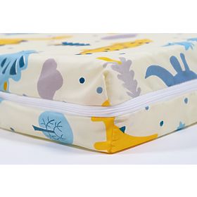 Matrac s dinosauřím vzorom je vyrobený z kvalitnej stredne tvrdej peny a je vhodný pre všetkých malých dino-nadšencov. Matrac je možné používať priamo v postieľke, cestovnej postieľke alebo ako náhradný matrac, keď dorazí detská návšteva. Veľkým benefitom matraca je prateľný poťah s detským motívom.