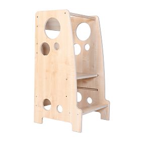 Detská montessori učiaca veža v hnedom prevedení s kruhovými výrezmi. Je spoľahlivý a praktický pomocník, ktorý rozvíja kreativitu, motorické schopnosti a .. viac
