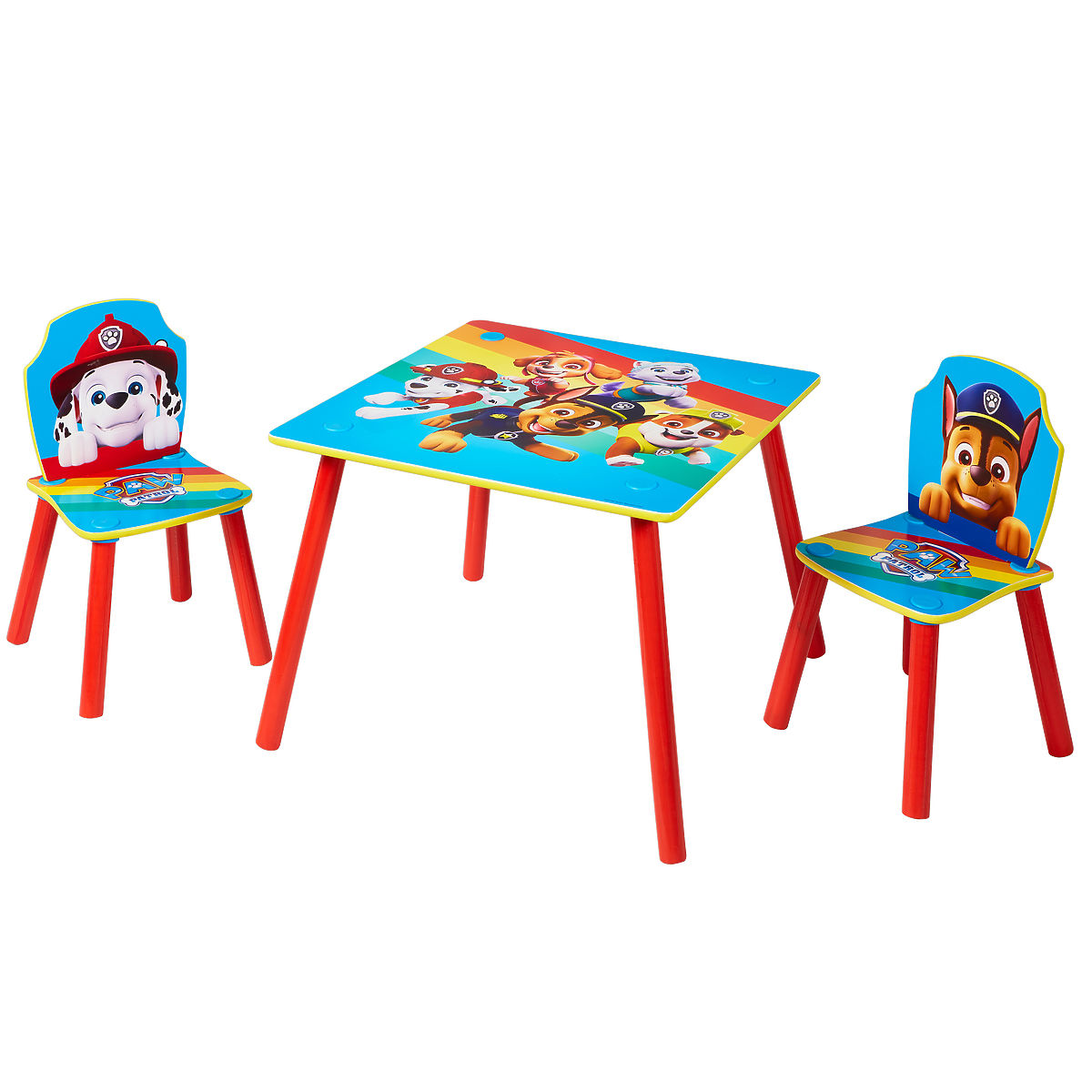Veselý a farebný set stola s dvoma stoličkami s motívom obľúbenej rozprávky Tlapková patrola. Perfektný a praktický doplnok do každej detskej izby či herne. Ideálny na rozvíjanie detskej fantázie, kreslenie, vyrábanie, maľovanie alebo dokonca na stolovanie. Stôl so stoličkami je ľahko udržiavateľný, povrch nábytku sa čistí jednoducho. Montáž je jednoduchá a rýchla. Set obsahuje stôl a dve stoličky.