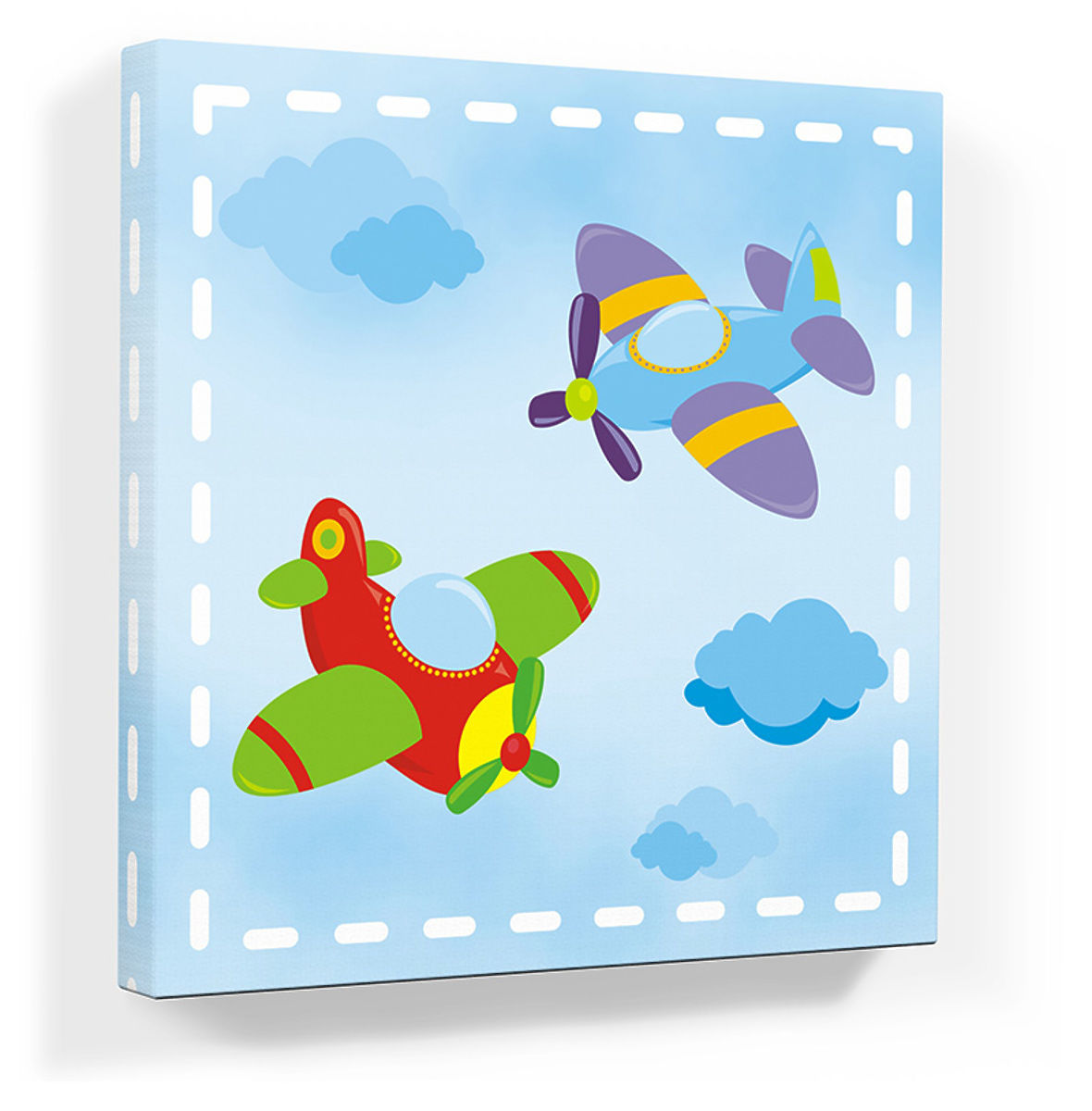 Detský obrázok s motívom lietadiel rozžiari každý chlapčenskú izbičku! Spolu so samolepkami, hodinami, vankúšom a chráničom tvorí jedinečný doplnkový set!