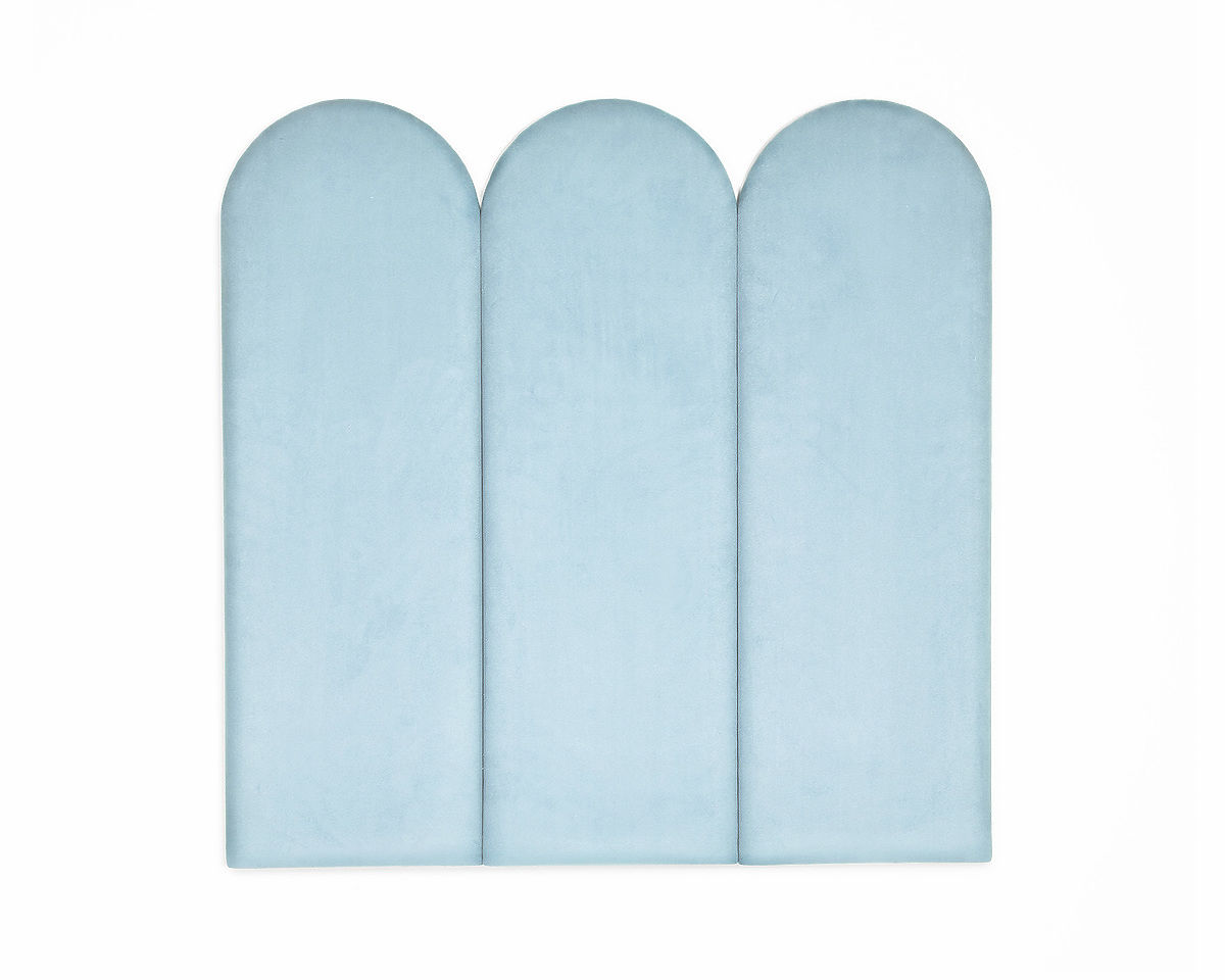 Elegantná a praktická úprava vašej steny? Čalúnené panely v baby modrej farbe sú presne to čo hľadáte. Zaoblený tvar ochrany steny pripomína tvarom cukrárskej piškóty (ladyfinger). Panely váš domov zútulnia a dotiahnu ho k dokonalosti. Kombináciou niekoľkých kúskov získate zaujímavý vizuálny efekt. Sú perfektné ako podpera hlavy pri posteli a jej mäkká pena, príjemná textúra, dokonalé poslúži napríklad ako opora pri čítaní či sledovaní televízie.