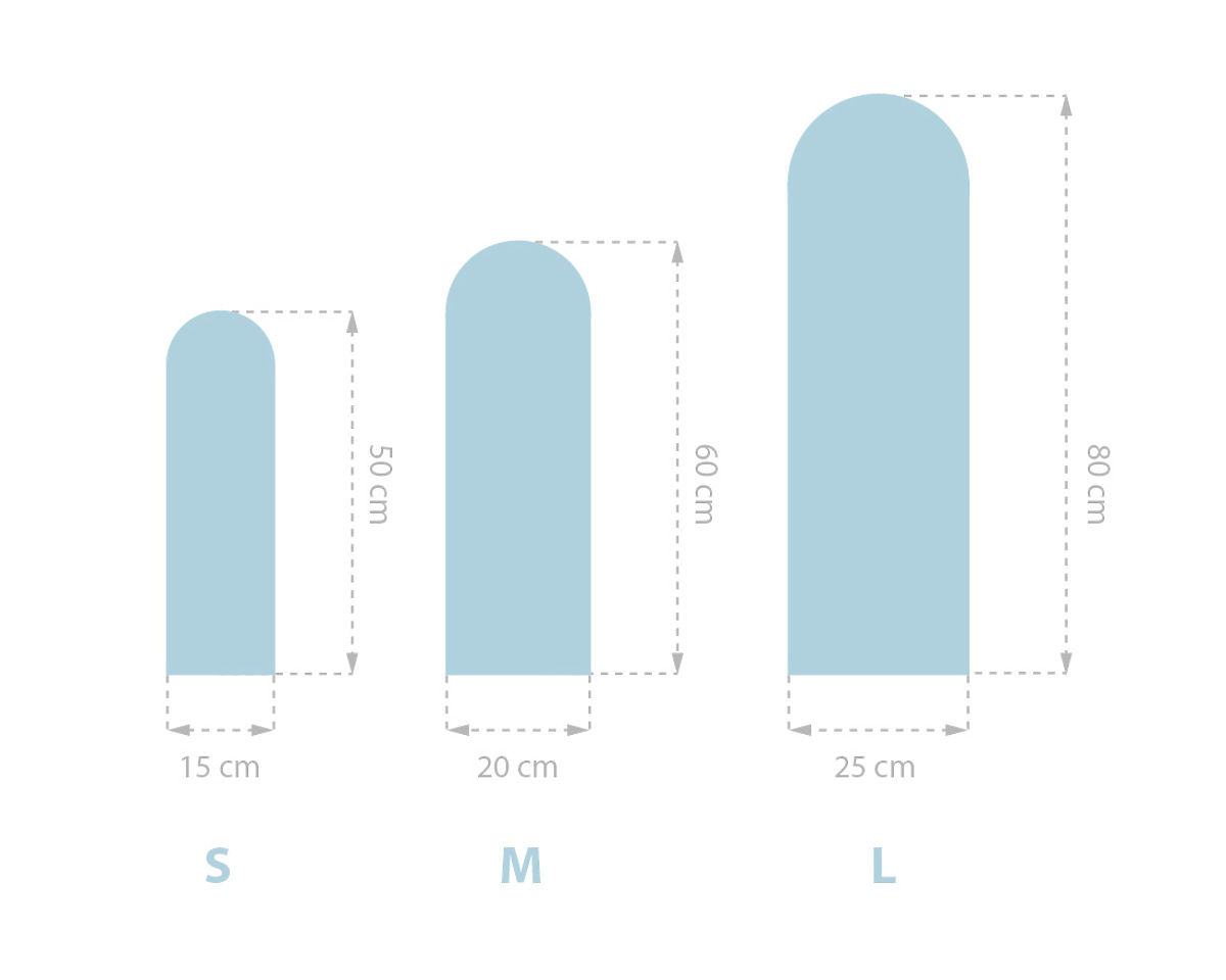 Čalúnené panely v baby modrej farbe sú k dispozícii v troch rôznych rozmeroch :