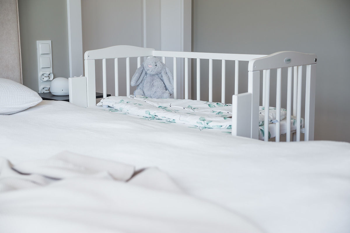 Babynabytek.sk » Detský nábytok / Postieľky / Drevené postieľky / Postieľka k posteli rodičov Amy - biela