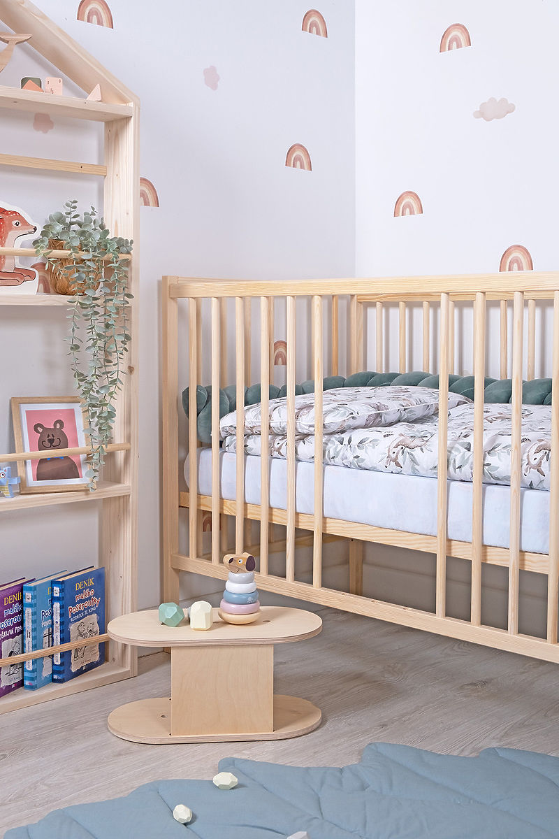 Klasická drevená detská postieľka Standard v prírodnej farbe sa vyznačuje svojou jednoduchosťou a je vhodná pre malých chlapcov aj dievčatá. Prírodný vzhľad postieľky najlepšie vynikne v izbičke v škandinávskom štýle.