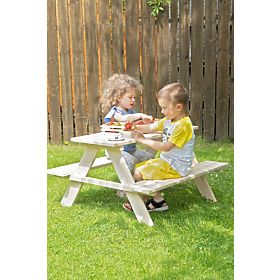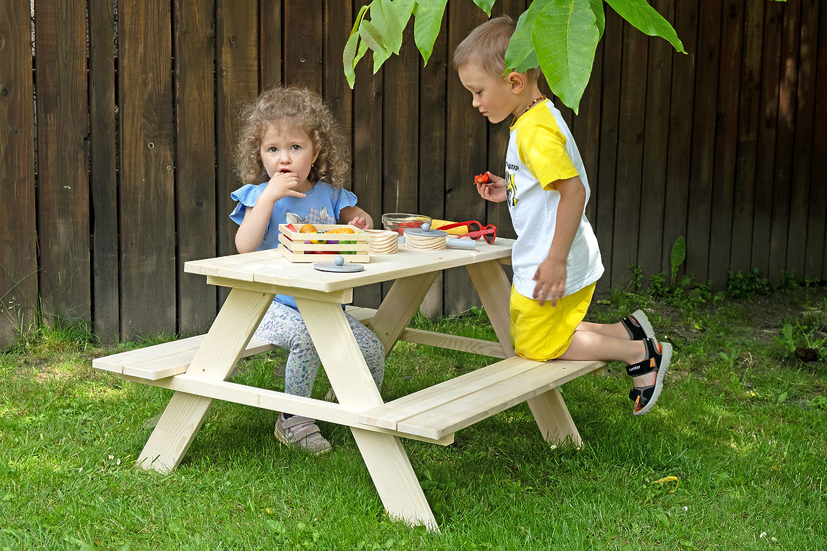 Ide o mini verziu záhradného piknikového stola pre deti. Set je vyrobený z vysoko kvalitného borovicového dreva. Tento piknikový stôl bude pre Vaše deti na záhrade nepostrádateľný a užijú si pri ňom veľa zábavy s kamarátmi.