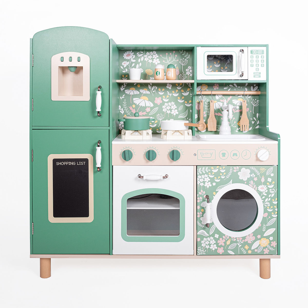 Zelená kuchynka Esmeraldia s kvetinovým vzorom zaujme malých aj veľkých kuchárov svojím bohatým príslušenstvom a tiež originálnym vzhľadom vo Vintage štýle.