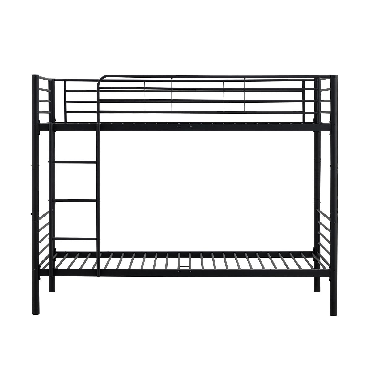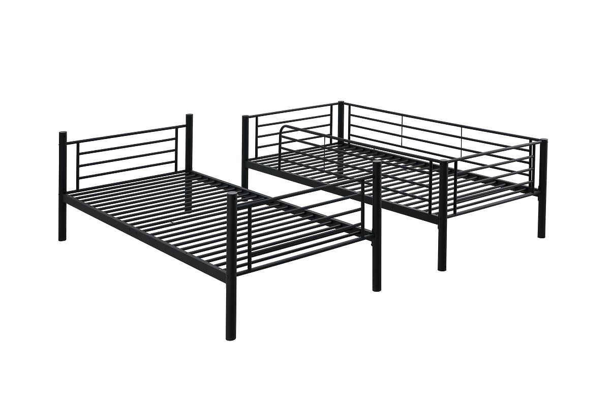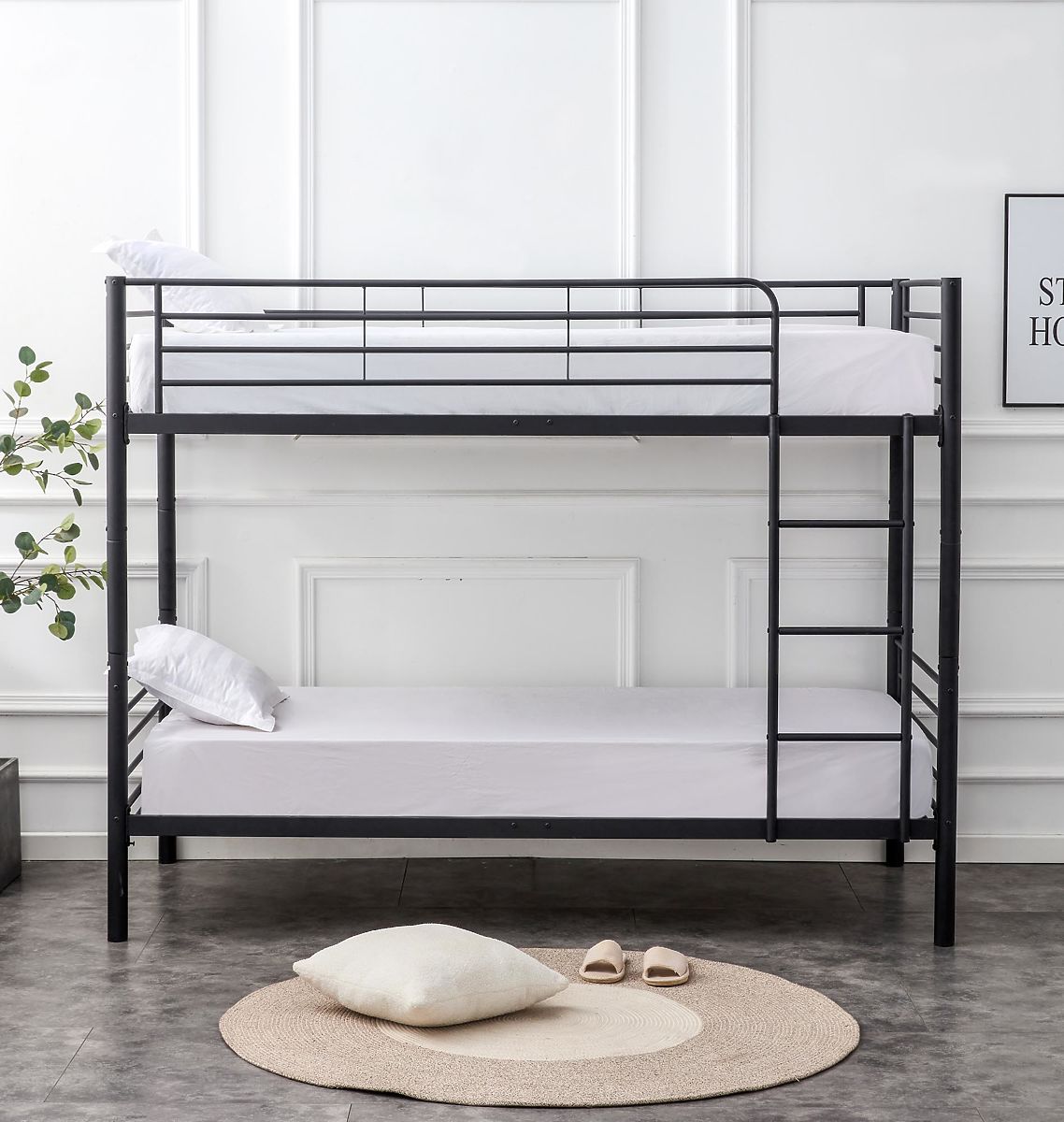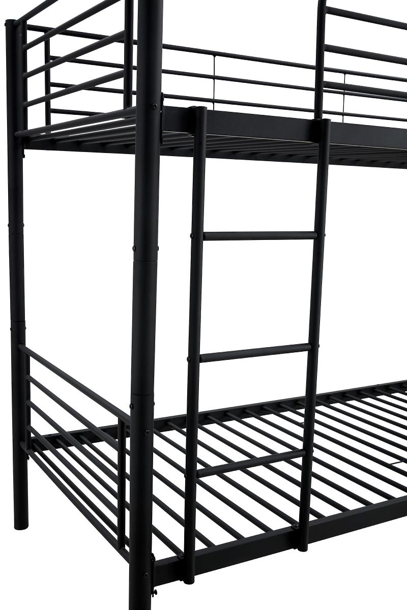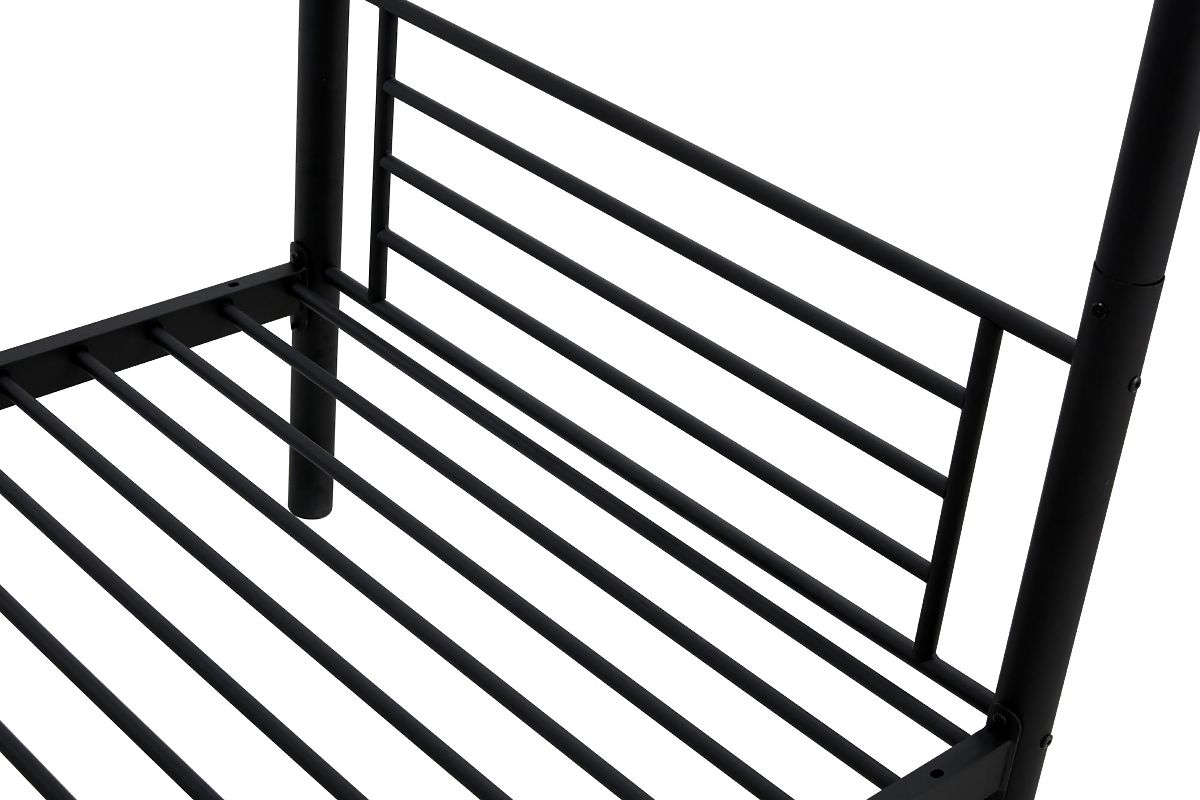 Moderná čierna dvojposchodová kovová posteľ BUNKY je ideálnou voľbou pre tých, ktorí hľadajú praktické a elegantné riešenie nielen pre detskú , ale aj študentskú izbu.