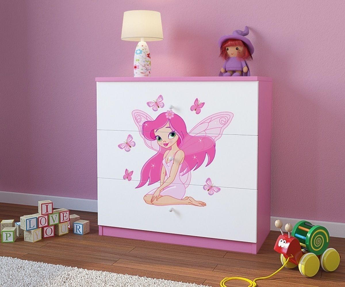 Komoda z kolekcie Ourbaby vyrobená z vysoko kvalitnej lamino dosky, dizajnom ladiaci k posteli "víla Leonka".