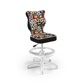 Model stoličky s podnožkou sa hodí k písacím stolom s výškou 70-82 cm. Tvar chrbtovej opierky zaisťuje správne polohovanie chrbtice a poskytuje užívateľovi maximálne odľahčenie chrbtice. Takto navrhnutá stolička navyše vytvára optimálne podmienky pre učenie mladým ľuďom, čo z nej robí mimoriadne zaujímavé a funkčné riešenie.
