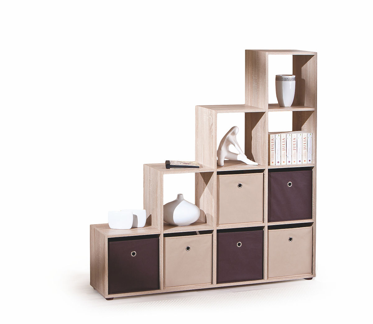 Moderný regál Luino vo farebnom prevedení dub sonoma. Regál je vhodný do obývacích izieb, kancelárií a detských izieb.
