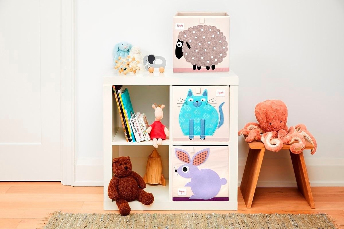 Úložný box s vystuženými stenami lepenkou môže stáť samostatne v miestnosti, čo uľahčuje prístup a organizáciu vecí vo vnútri. Štvorcový tvar umožňuje ľahké umiestnenie do rôznych častí detskej izby a na štandardné police na trhu.