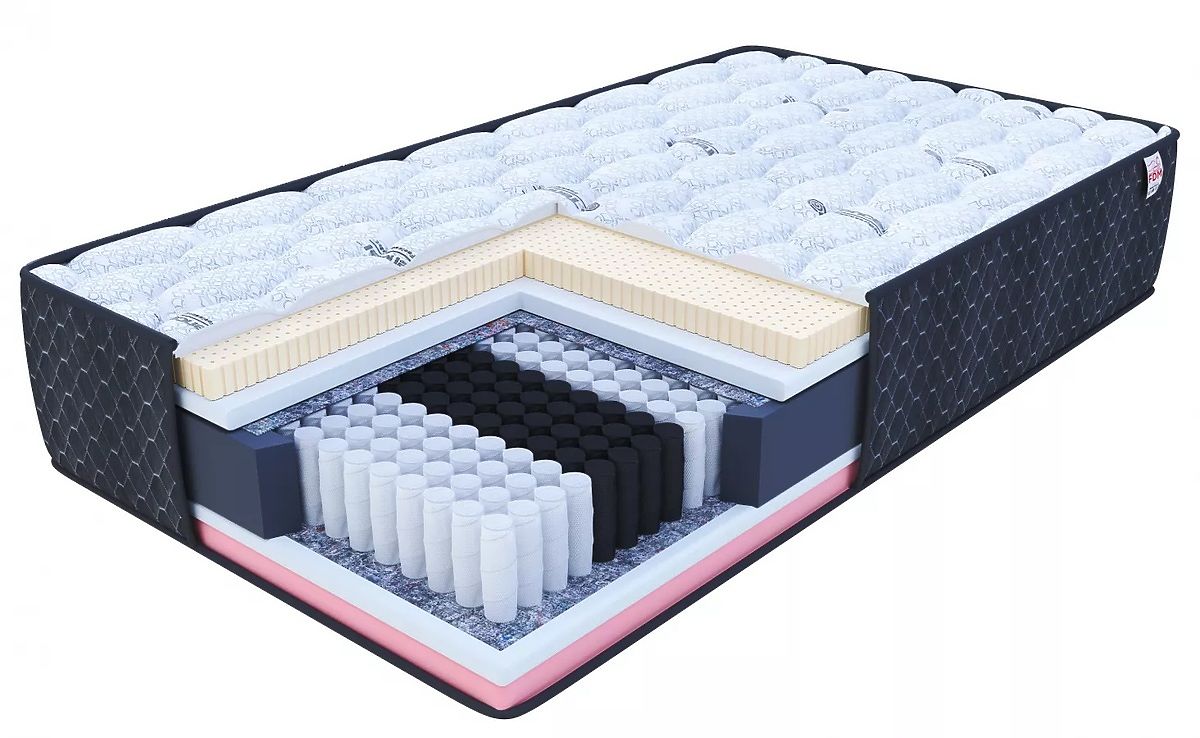 Na jednej strane matraca sa nachádza vrstva latexu, ktorá je veľmi pružná, čo zlepšuje pohodlie, a vďaka perforovanej štruktúre je skvele priedušná. Ďalšiu vrstvu tvorí pur pena T25, ktorej prednosťou je vysoká odolnosť proti deformácii, pružnosť, priedušnosť a stabilizuje telo počas odpočinku. Medzi pružiny a pur penu T25 bol vložený oddeľujúci materiál. Jedná sa o prírodnú plsť, ktorá môže výrazne predĺžiť životnosť matraca a posilniť jej konštrukciu. Komfort spánku neuveriteľne zvyšuje termoplastická pena VISCO, ktorú nájdeme na druhej strane matraca. Vplyvom telesnej teploty a hmotnosti dokonale kopíruje prirodzené krivky tela, čo zaisťuje správnu podporu celej postavy. VISCO a pružiny opäť rozdeľuje vrstva odolnej pur peny T25 a prírodný oddeľujúci materiál.