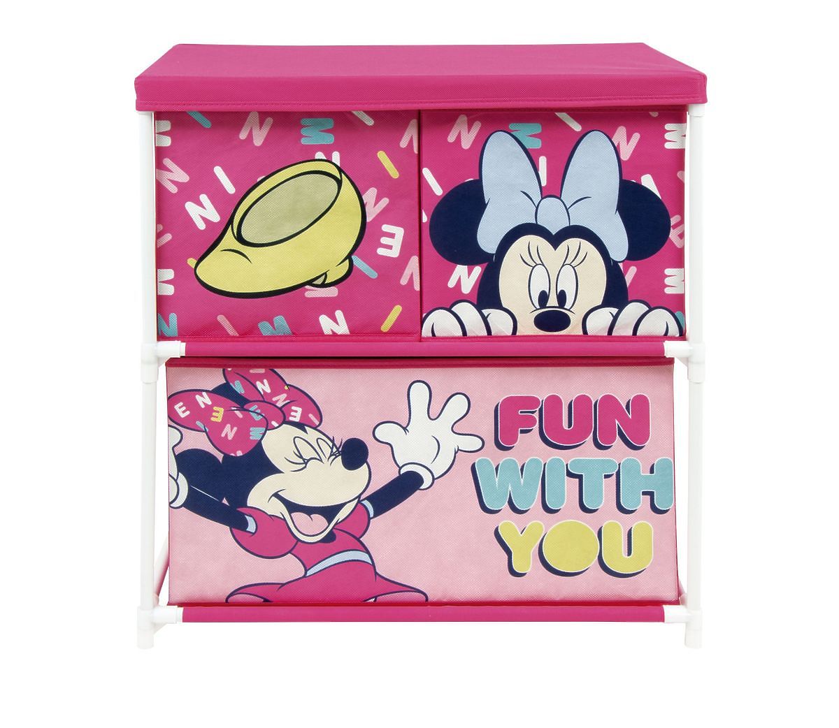 Praktický organizér s 3 látkovými šuplíkmi. Ozdobte a usporiadajte deťom ich hračky s praktickým organizérom s motívom Minnie Mouse. Zaberá málo miesta a dá sa ľahko a rýchlo zložiť. Všetko máte tak orgranizované a pripravené po ruke.