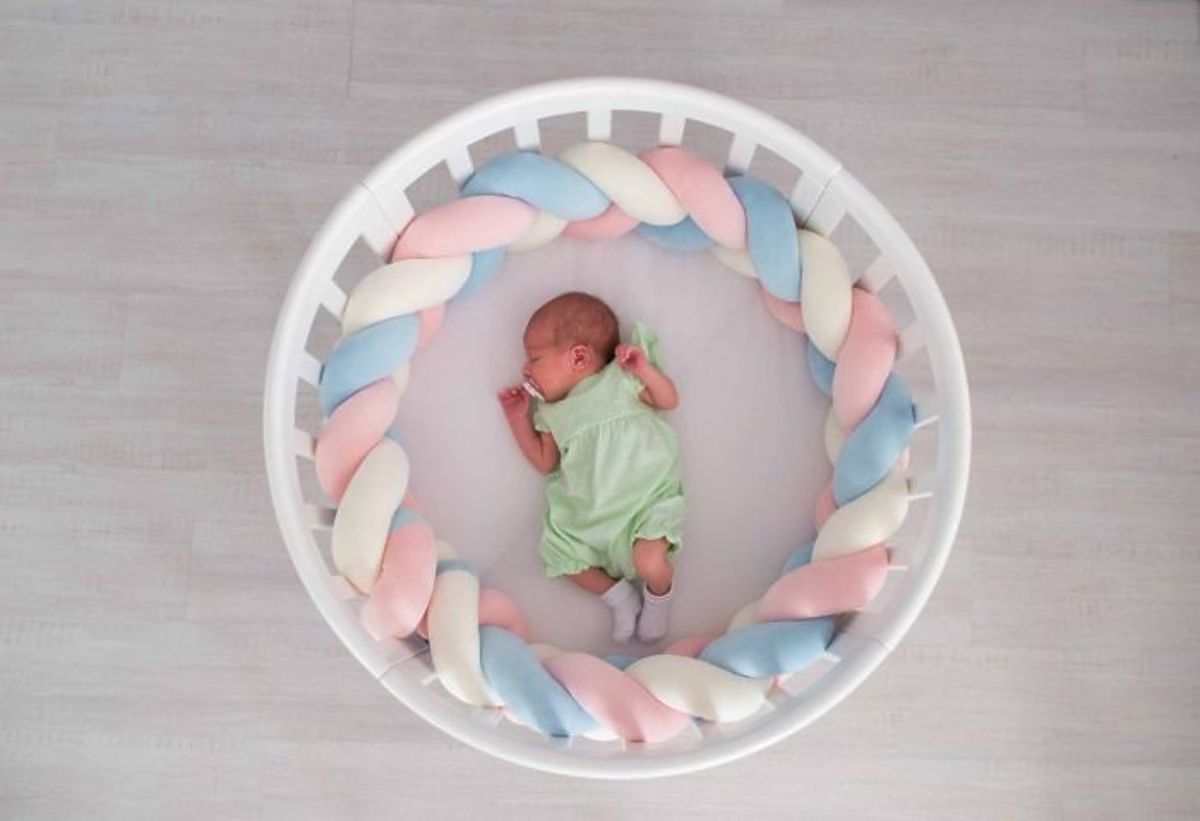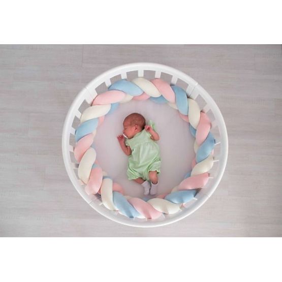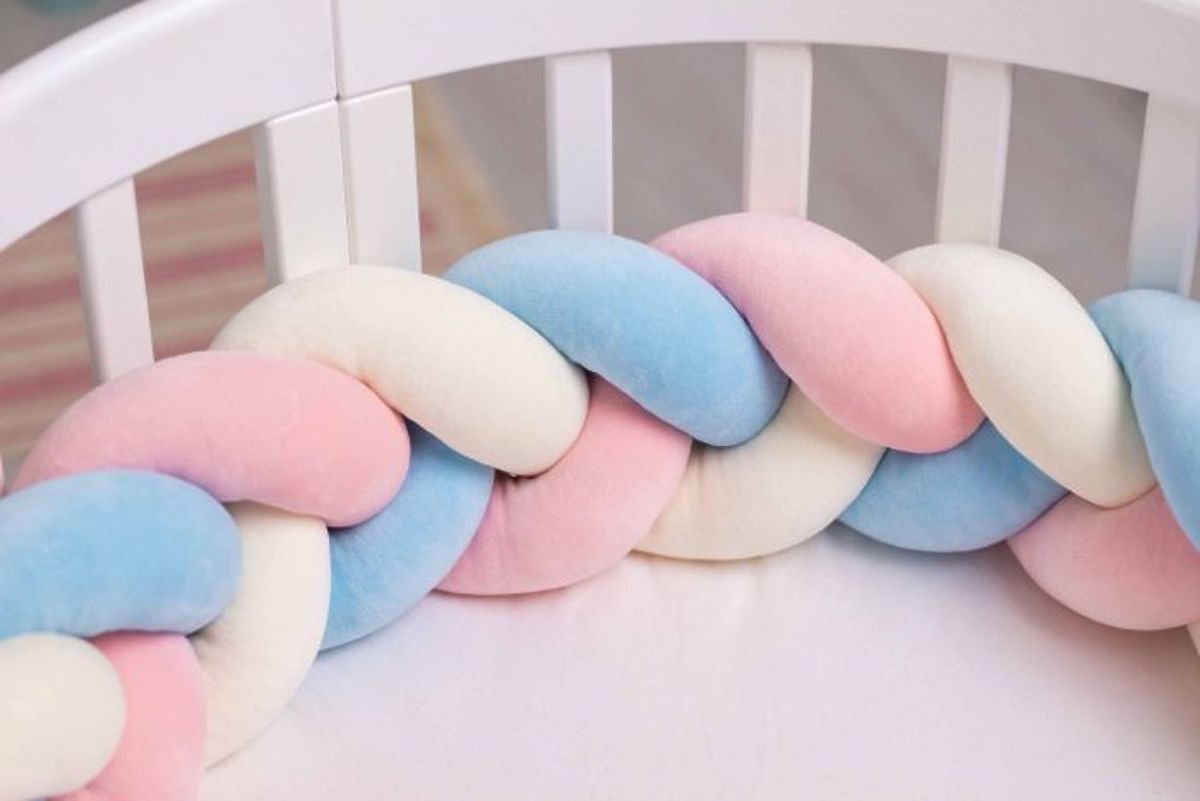 Vrkočový mantinel v pastelových farbách je moderný, štýlový dekoratívny prvok do každej detskej postieľky. Zabezpečuje bezpečnosť pri pohybe bábätka v postieľke.