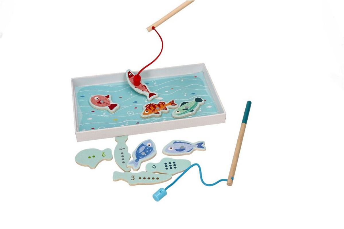 Hoďte udice a chyťte ich všetky, a po úspešnom love spočítajte body. Vďaka tomu, že každá rybka má na zadnej strane iný počet bodiek a zodpovedajúce číslo, dieťa sa môže tiež učiť počítať. Kvalita zaručená, hračka vyrobená s najväčšou precíznosťou od značky Adam Toys.
