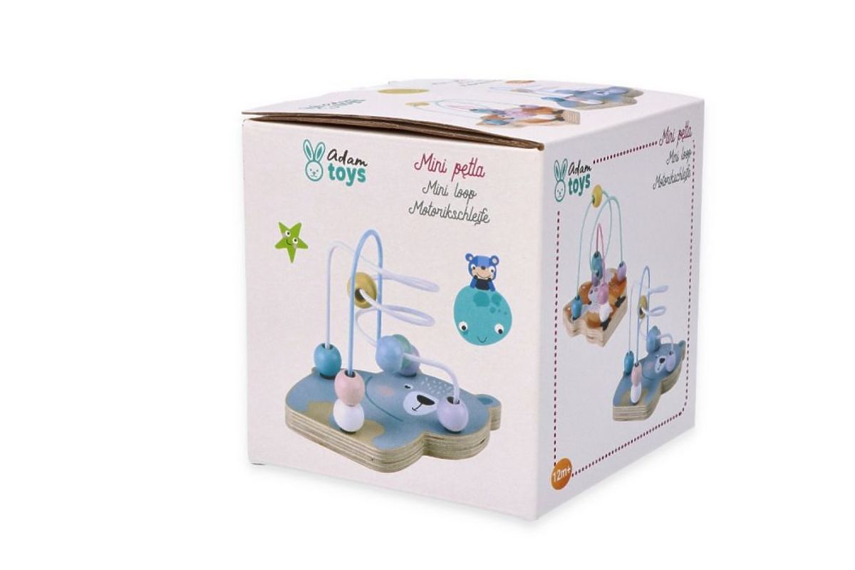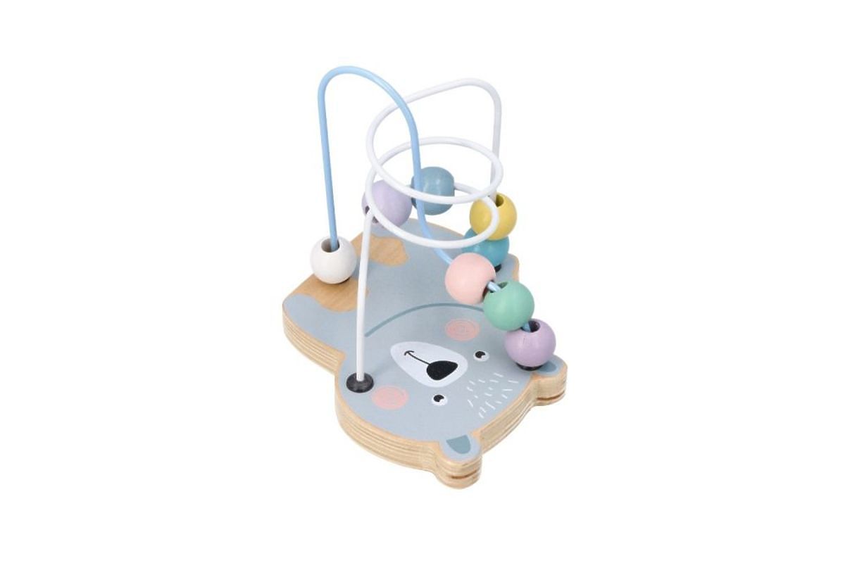 Hračka sa skladá z podstavca s vyobrazením Medvedíka, 2 kovových drôtikov ohnutých tak, že tvoria slučky, a na každom drôtiku sú 4 drevené korálky. Celé je to zabalené v estetickej krabičke, ideálnej ako darček.