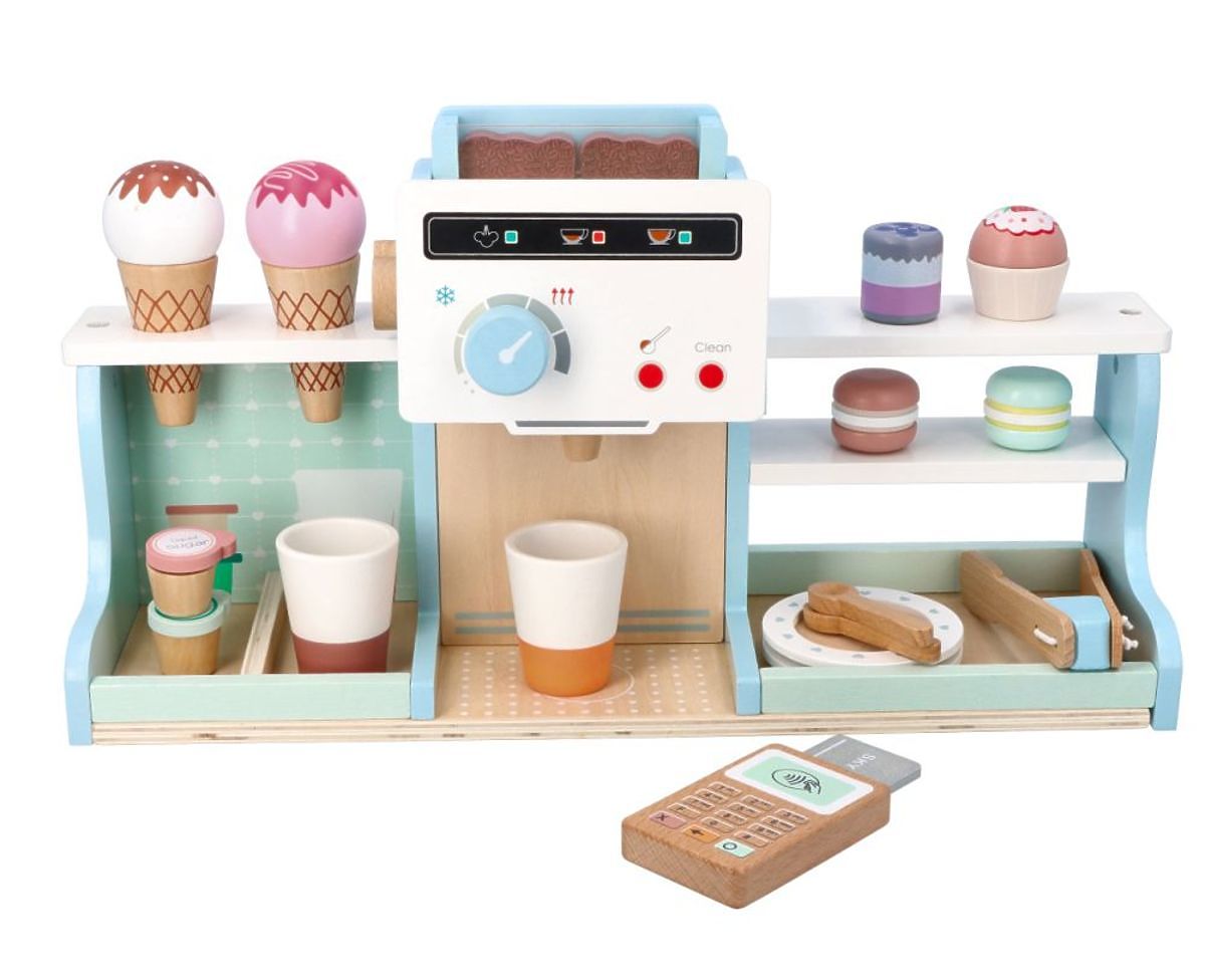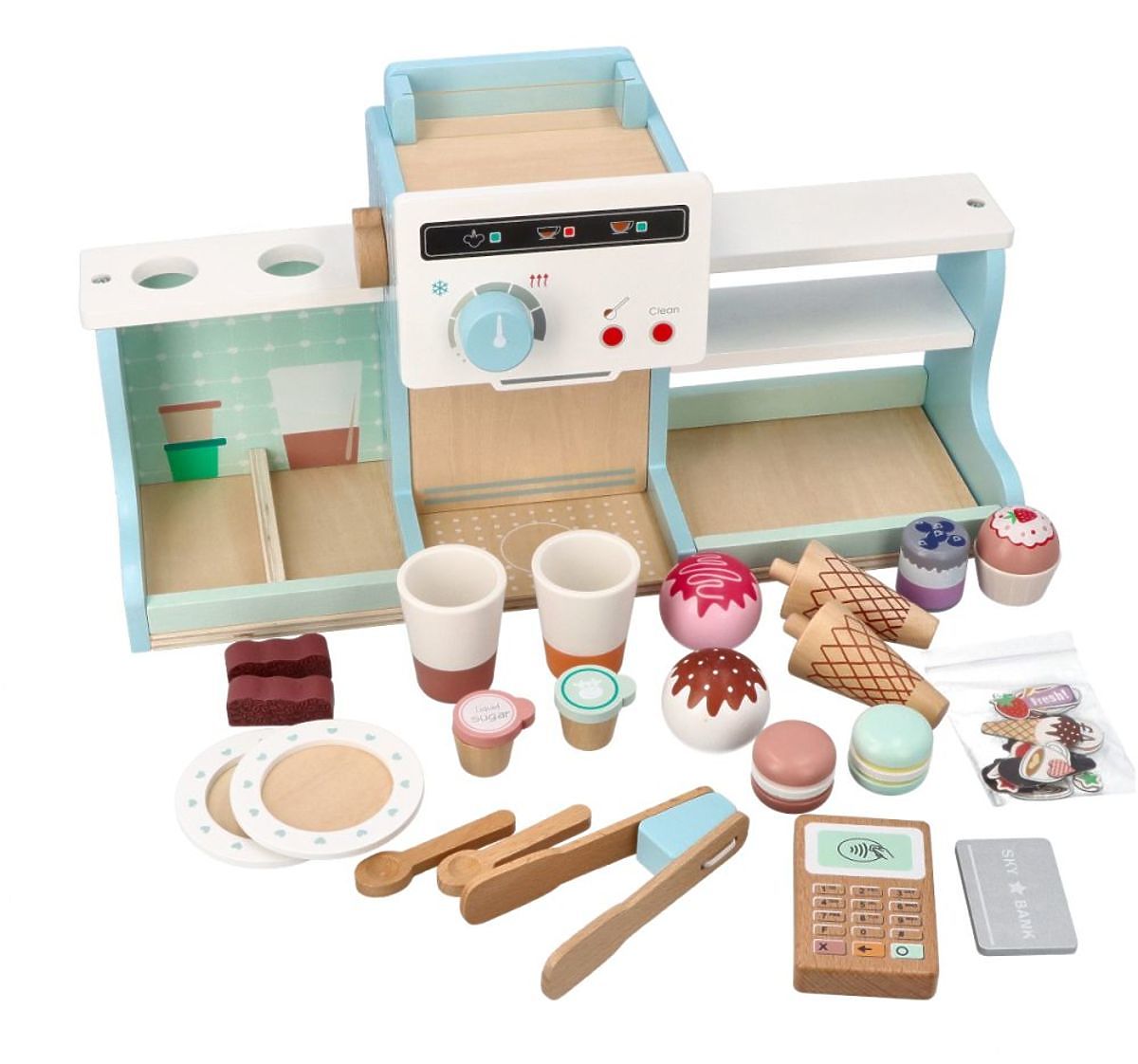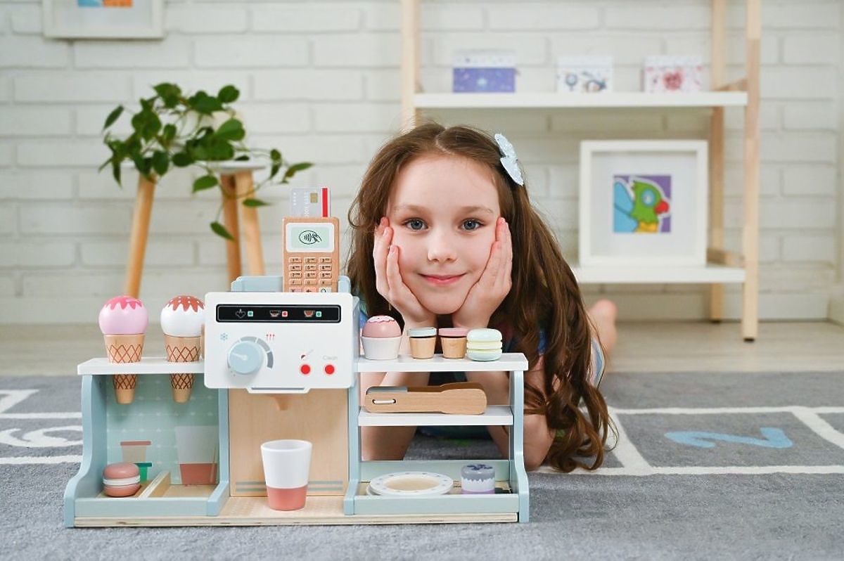 Čo stojí za zmienku, je dôraz na detaily, napr. káva na vrchole kávovaru, zmrzlina z dvoch častí, nádobky so suchým zipsom, ktoré možno otvárať. Rovnako dôležitý je dizajn. Krásna jemná farebnosť, prúžky a potlače po stranách a vnútri kaviarne robia túto hračku výnimočnou.