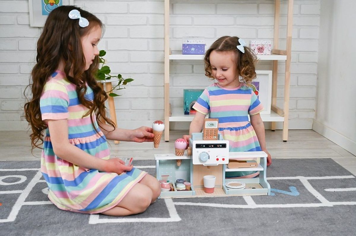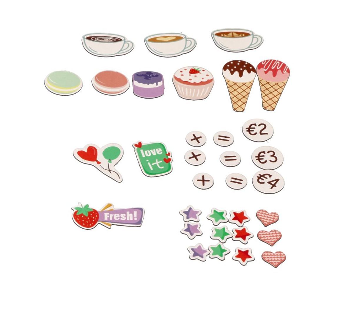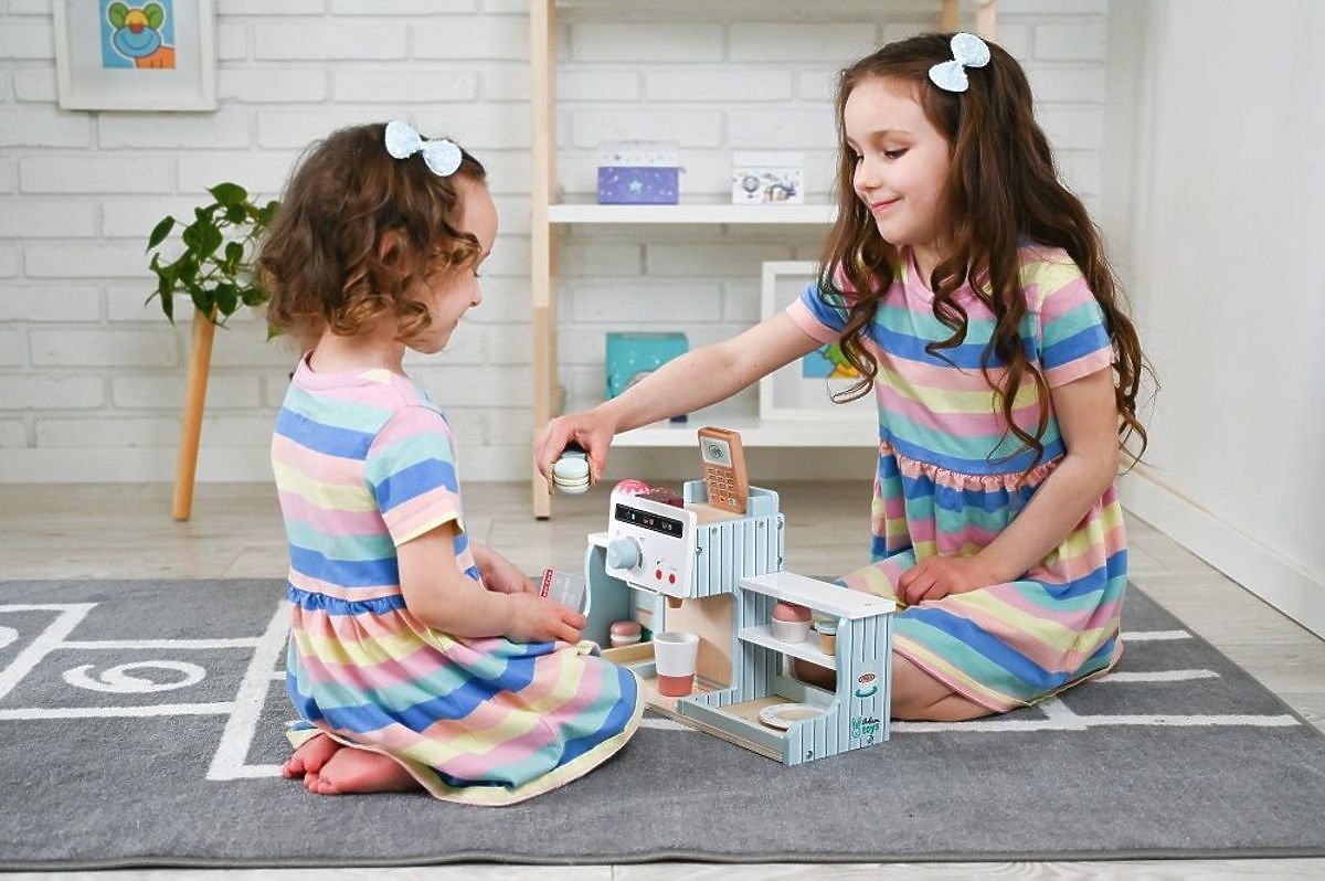 Čo stojí za zmienku, je dôraz na detaily, napr. káva na vrchole kávovaru, zmrzlina z dvoch častí, nádobky so suchým zipsom, ktoré možno otvárať. Rovnako dôležitý je dizajn. Krásna jemná farebnosť, prúžky a potlače po stranách a vnútri kaviarne robia túto hračku výnimočnou.