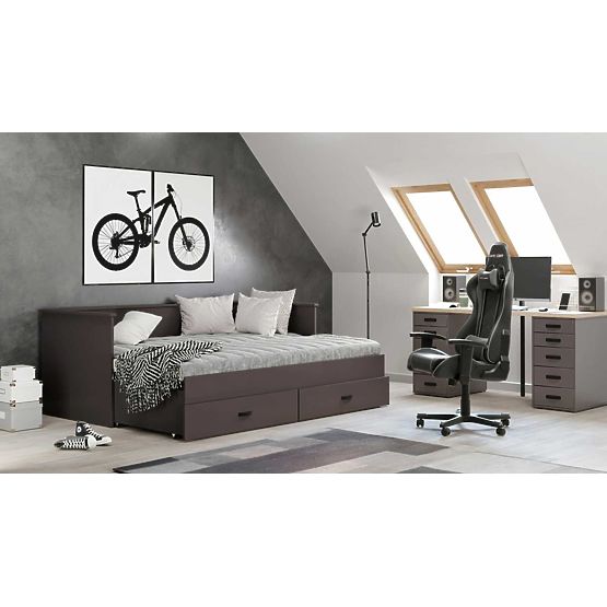 Zháňate posteľ do študentskej izby, spálne či izby pre hostí? Skvelou voľbou je rozkladacia posteľ HELIOS v šedej farbe. Tento model spája elegantný dizajn s praktickou funkcionalitou . Nielenže vnesie do izby nádych jemnosti, vzdušnosti a harmónie, ale aj vás milých prekvapí svojou praktickou stránkou (jednoduchým vysunutím roštu ju možno premeniť na manželskú posteľ). Úložný priestor vám poskytnú dve priestranné zásuvky, ktoré sú vhodné na ukladanie posteľnej bielizne, oblečenia a ďalších vecí.