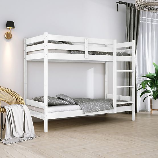 Hľadáte perfektný darček pre svoje deti, ktorý im nielenže urobí radosť, ale tiež zútulní ich izbičku a uľahčí vám organizáciu priestoru? Potom už nehľadajte ďalej! Poschodová posteľ z masívneho borovicového dreva v bielej farbe je ideálnou voľbou pre deti, tínedžerov a dospievajúcich, ktorí si želajú štýlový a praktický nábytok. Táto farebná varianta má elegantný nádych, vďaka ktorému sa vaše deti budú tešiť do svojej izby.