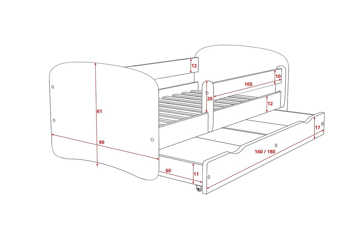 | Prevedenie posteľe: | so zábranou, s úložným priestorom, bez potlače |