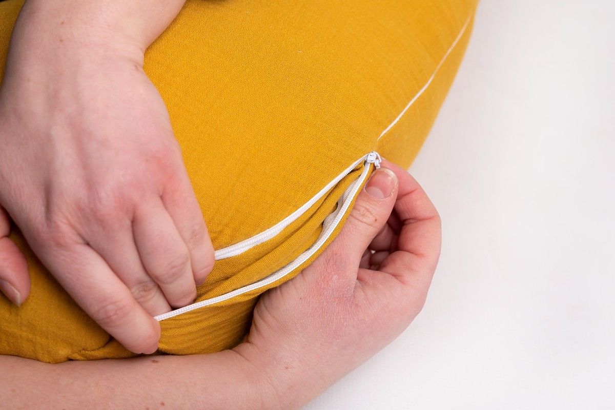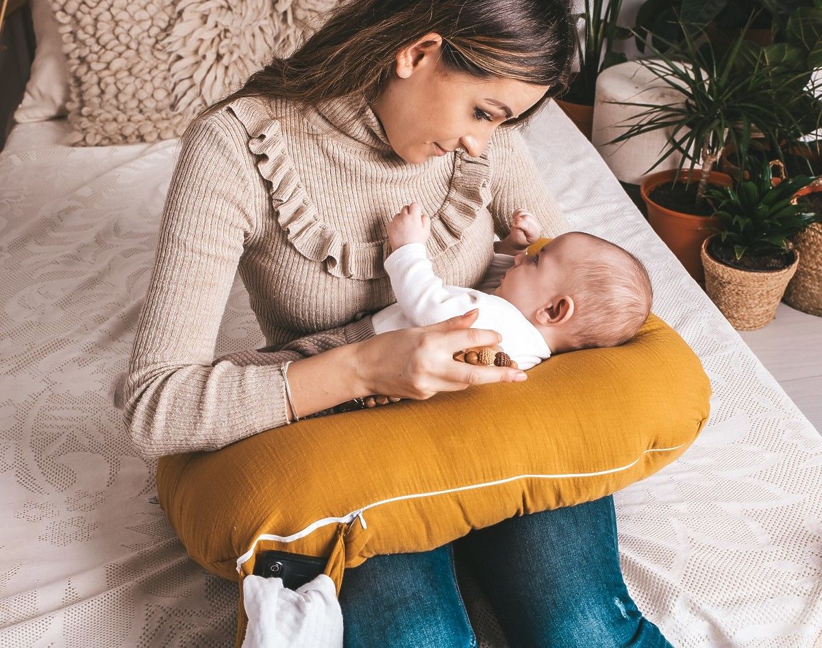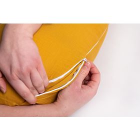 Mušelínový polohovací vankúš Heavens - horčicový s vreckom je perfektným darom pre každého, kto si cení pohodlie a relaxáciu