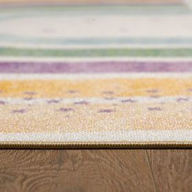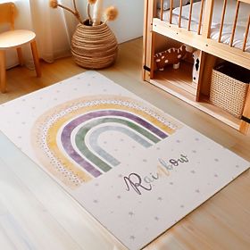 Krásny koberec s motívom pastelovej dúhy vnesie do izby Vášho dieťaťa upokojujúcu atmosféru. Decentné farby tohto koberca vytvoria príjemný priestor na hranie a zároveň miesto na hranie, ktoré si vaše dieťa zamiluje.