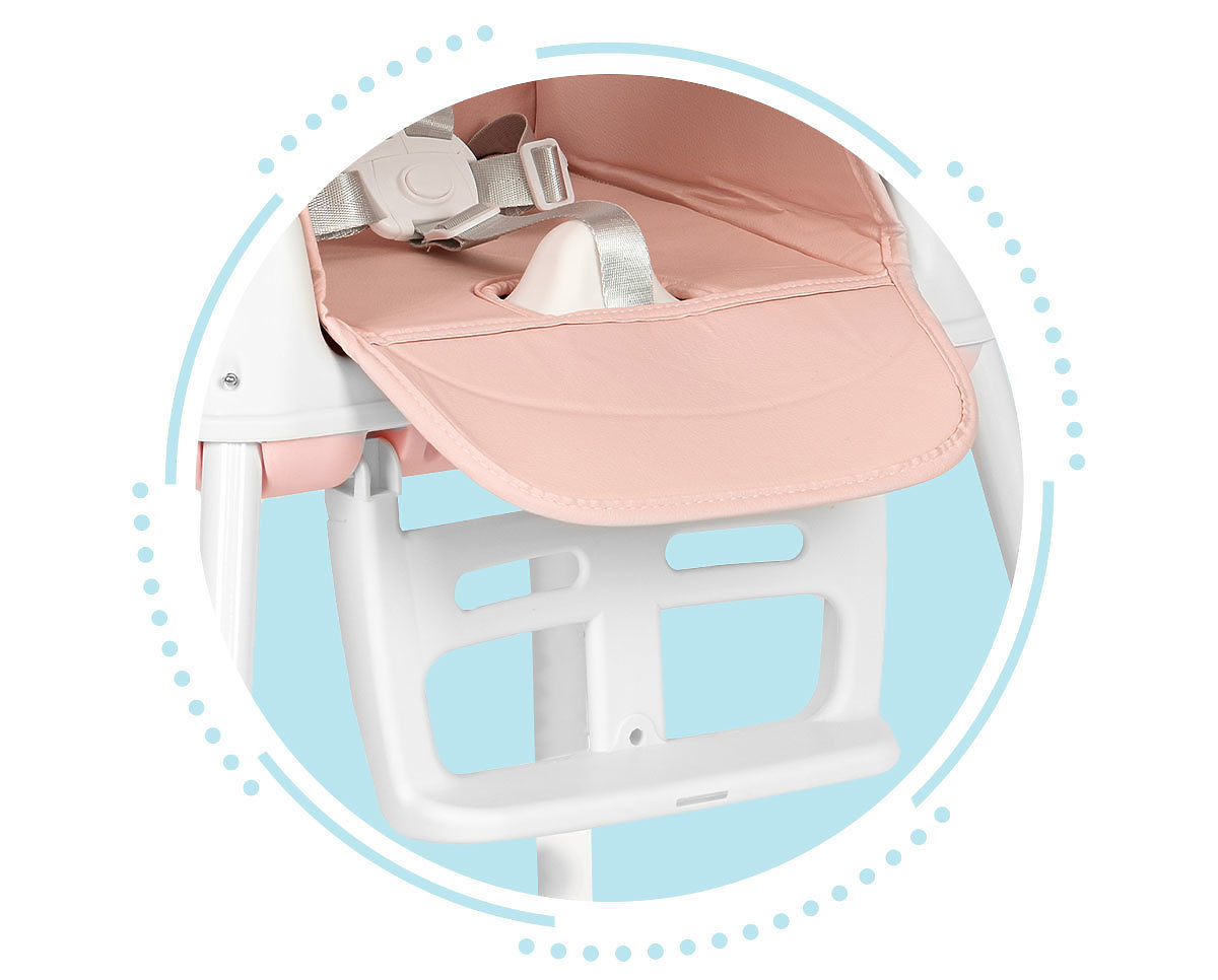 PLNÉ POHODLIETác má nastaviteľnú vzdialenosť od operadla, stačí použiť páku, ktorá sa nachádza na jeho spodnej strane a posunúť. Jeho výhodou sú dve vrstvy a profilované okraje, ktoré zabránia pádu jedla na zem.