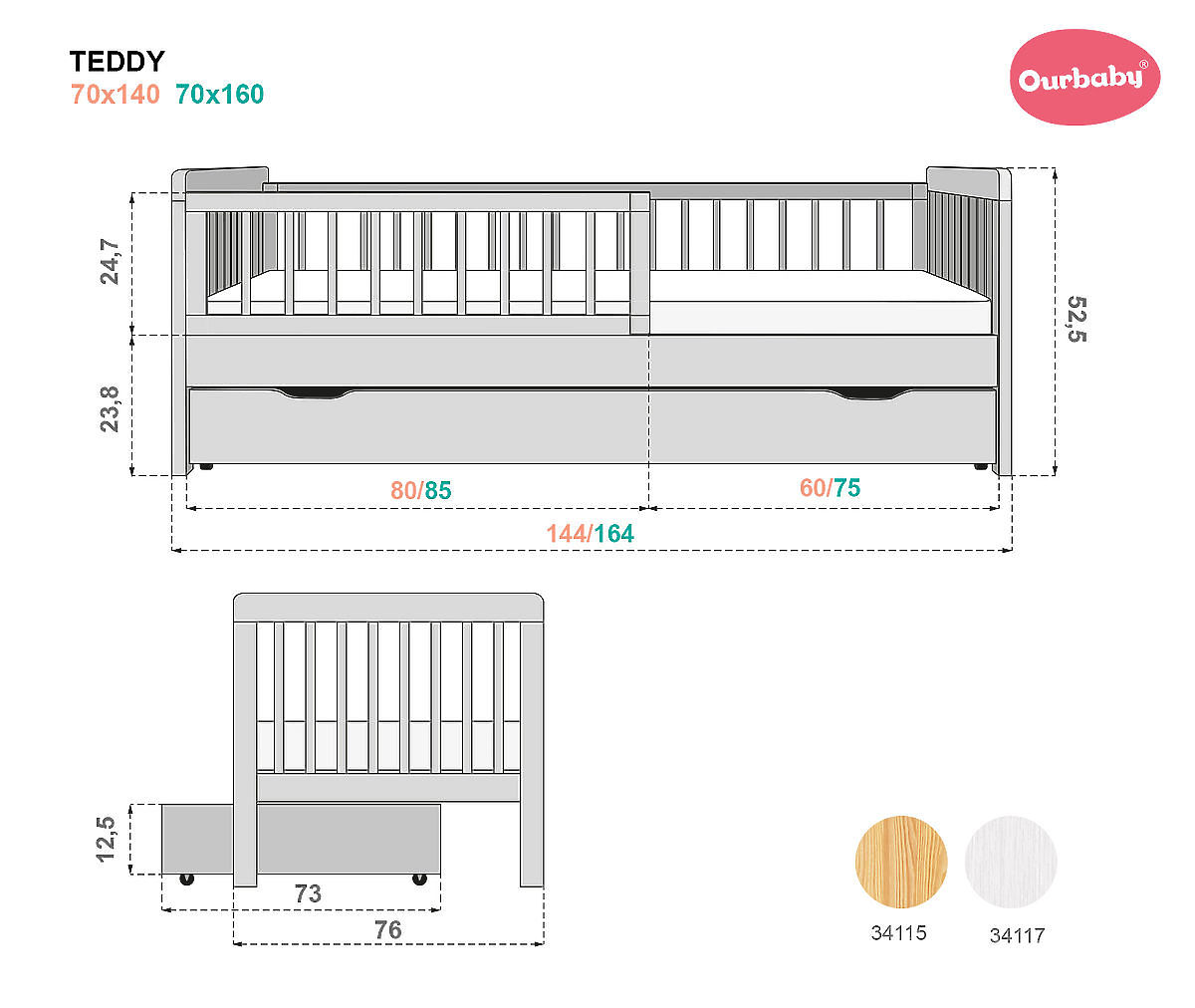 Detská posteľ so zábranou TEDDY je univerzálnym riešením do každej izby. Prírodnú posteľ je možné vždy kombinovať s rôznymi farebnými kombináciami, čím sa stáva vhodnou voľbou do izbičky pre chlapcov aj dievčatá.