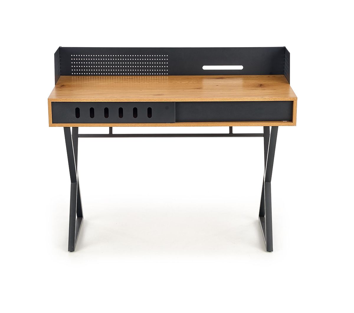 Moderný písací stôl s elegantným dizajnom v kombinácii zlatého dubu a čiernej farby. .. viac