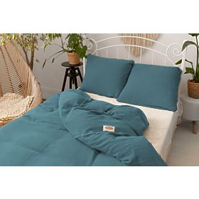 Tmavozelené mušelínové obliečky o rozmeroch 140x200 cm + 70x90 cm sú dokonalou voľbou pre tých, ktorí hľadajú spojenie luxusu, pohodlia a štýlu. Mušelín je ideálny materiál pre pokojný spánok vďaka svojej jemnosti, priedušnosti, ľahkosti a tiež je vhodný pre citlivú pokožku, pretože nedráždi a umožňuje pokožke dýchať.