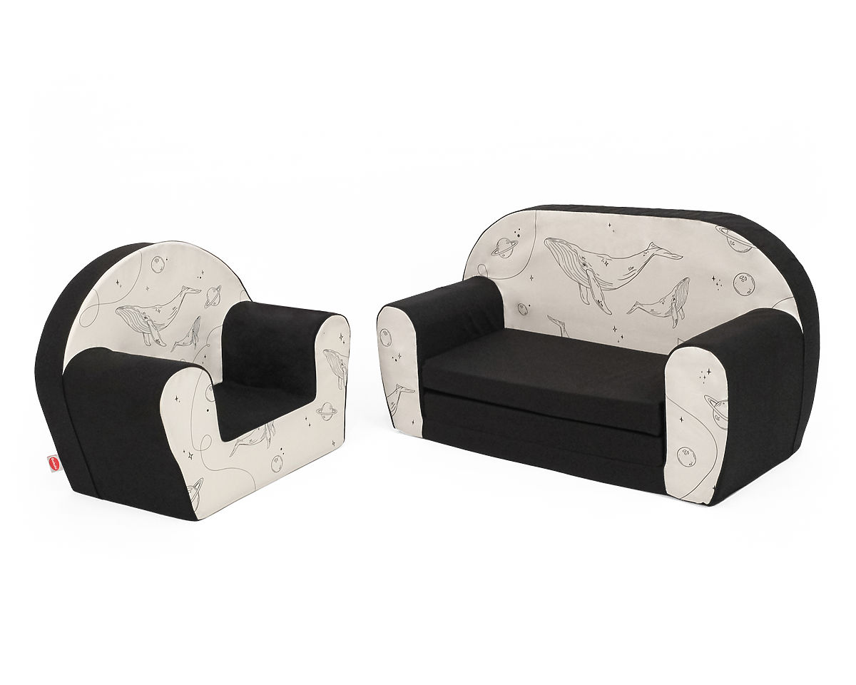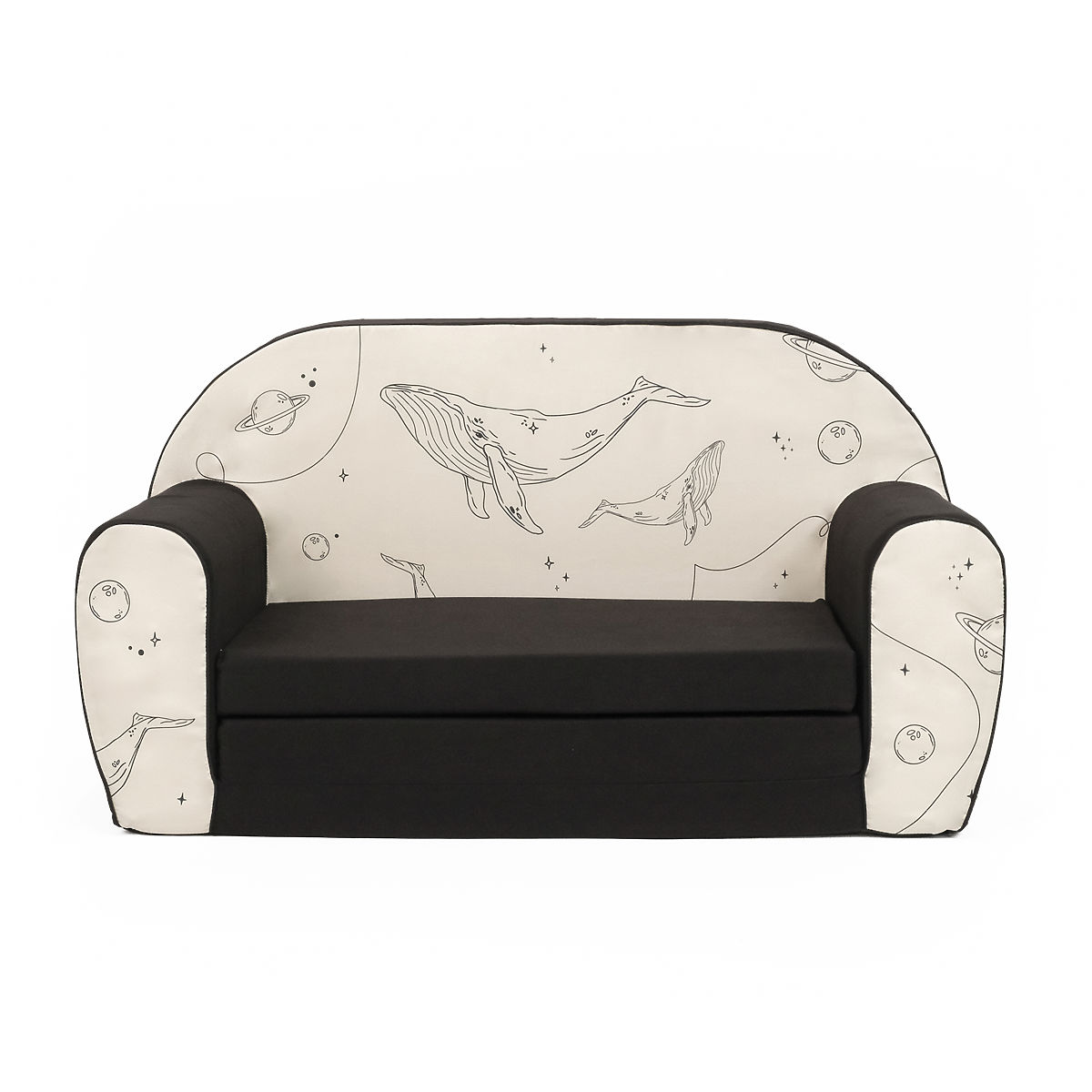 Vydajte sa na čarovnú cestu galaxiou, kde veľryby plávajú medzi hviezdami! Táto krásna detská pohovka spája tajomstvo hlbokého oceánu s nekonečnosťou vesmíru a vytvára tak čarovné miesto pre snívanie, hranie aj oddych.