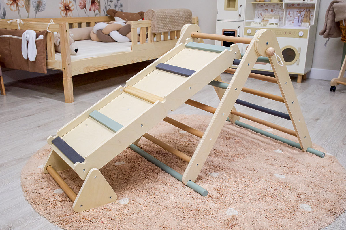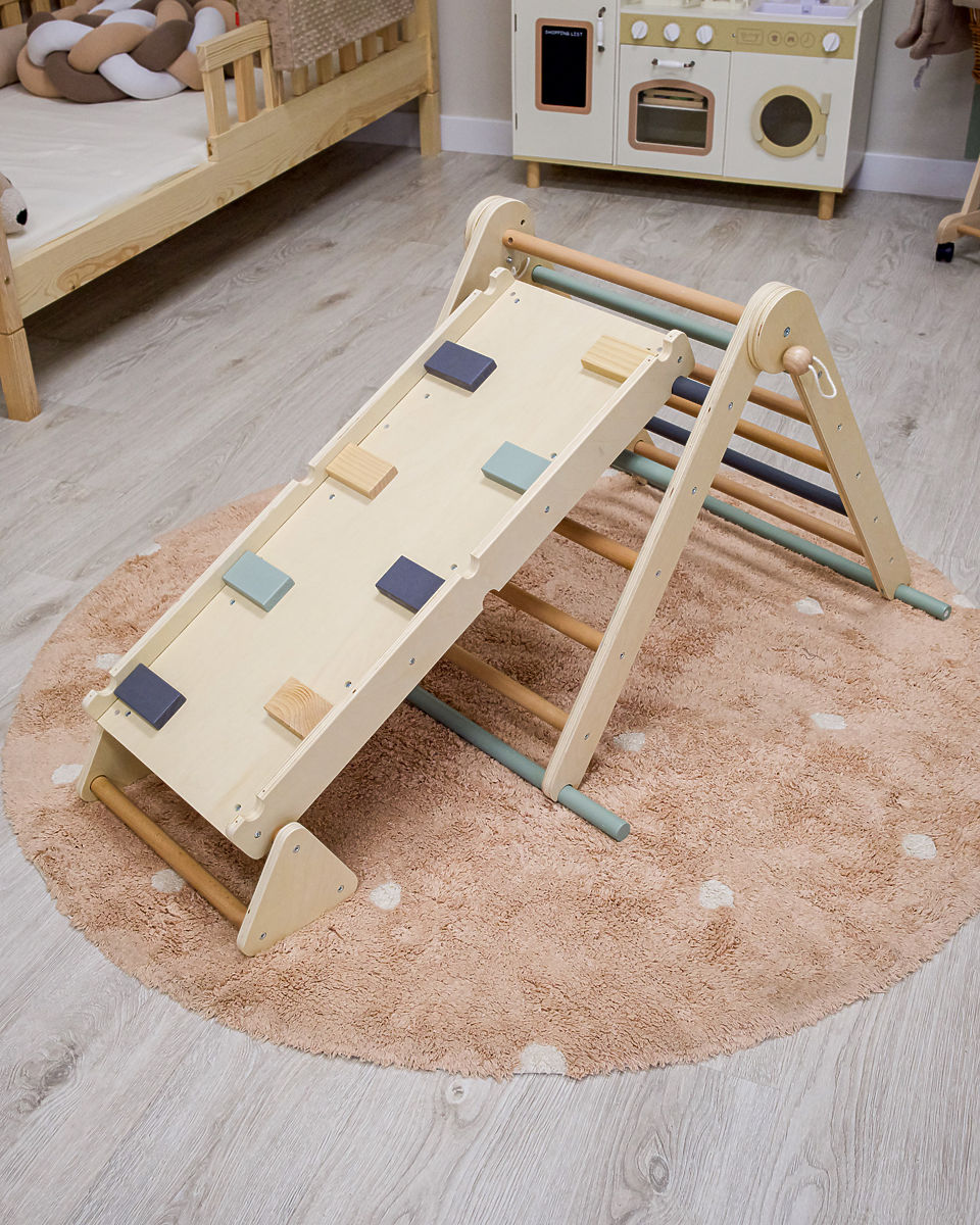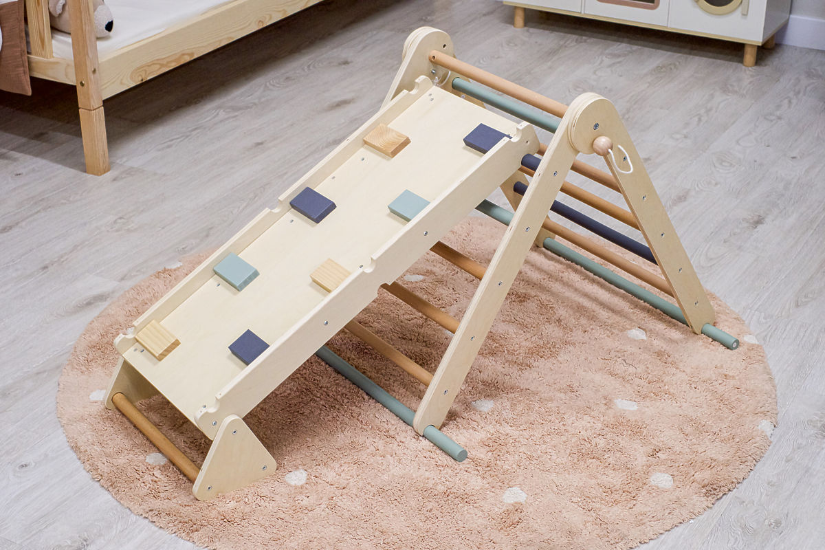 Piklerov trojuholník Laura pre deti – zábavná a bezpečná hračka, ktorá podporuje rozvoj motoriky, rovnováhy a kreativity. Vďaka pevnej konštrukcii z MDF dreva môže dieťa liezť, podliezať, šplhať aj kĺzať sa, čo z trojuholníka robí multifunkčný herný prvok pre aktívnu hru doma aj v herni.