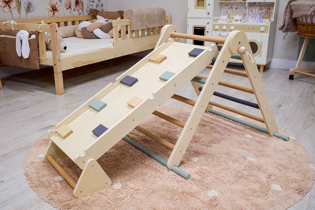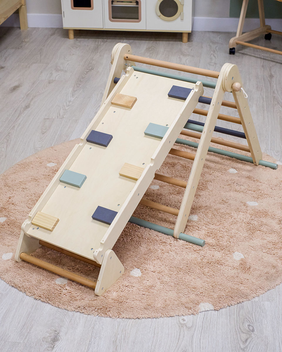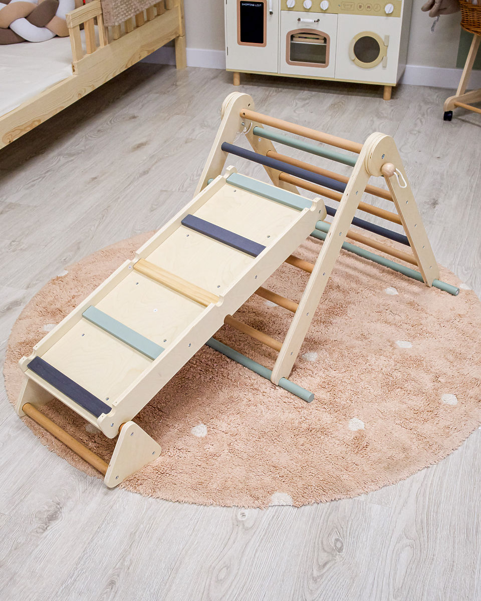 Piklerov trojuholník Laura pre deti – zábavná a bezpečná hračka, ktorá podporuje rozvoj motoriky, rovnováhy a kreativity. Vďaka pevnej konštrukcii z MDF dreva môže dieťa liezť, podliezať, šplhať aj kĺzať sa, čo z trojuholníka robí multifunkčný herný prvok pre aktívnu hru doma aj v herni.