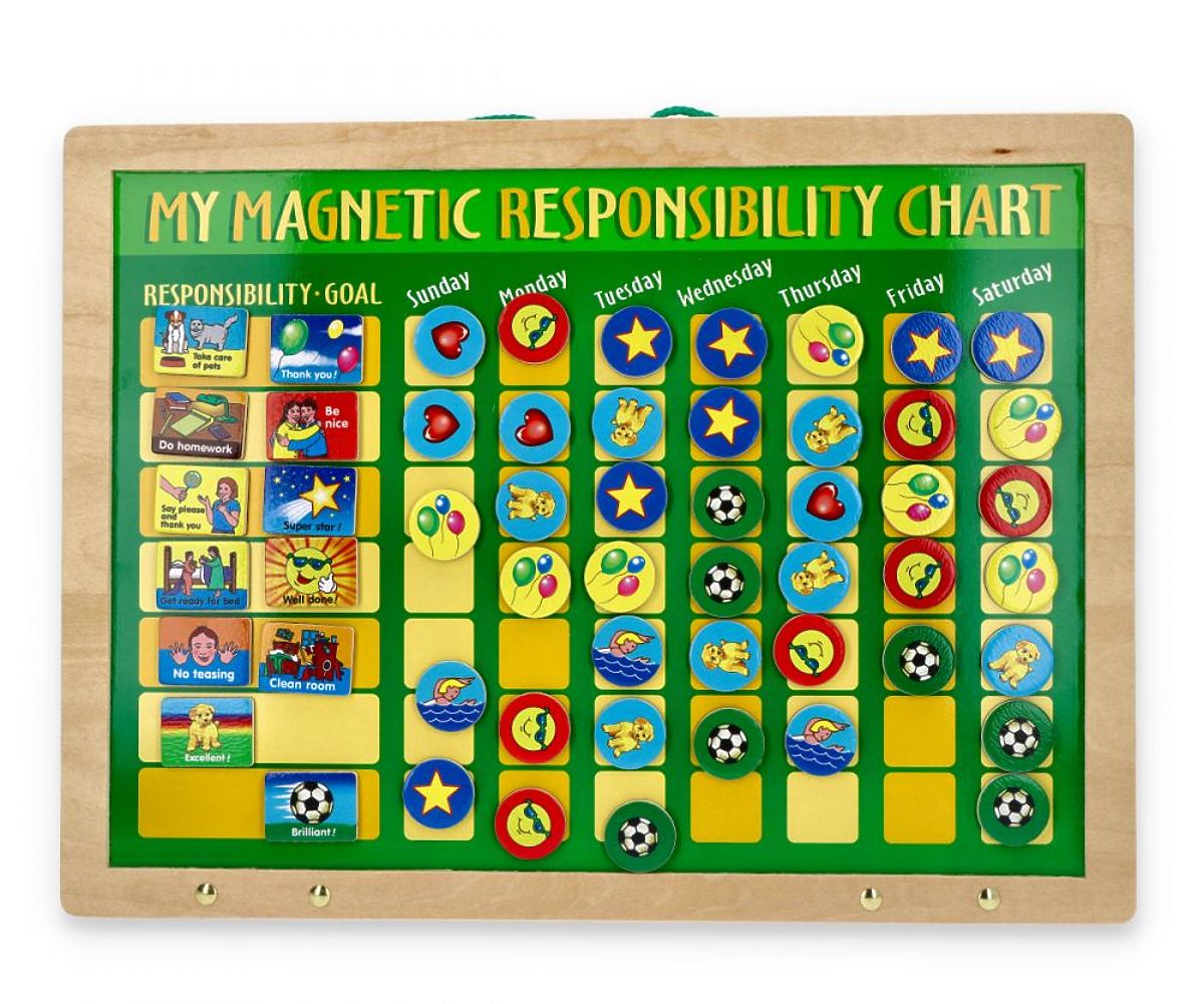 Organizácia času a plánovanie dňa je jednou z najdôležitejších zručností v živote každého z nás. Je dobré zabezpečiť, aby naše deti mohli túto zručnosť úspešne získavať už od útleho veku. Tabuľa zodpovednosti sa ideálne hodí k tomuto procesu. Umožní dieťaťu naplánovať si plnenie základných povinností v konkrétny deň týždňa. V našom obchode predstavujeme tabuľu, ktorá vám pomôže pri stanovení pravidiel a zásad, ktoré by dieťa malo poznať, a pri odmeňovaní príslušným symbolom za ich dodržiavanie.