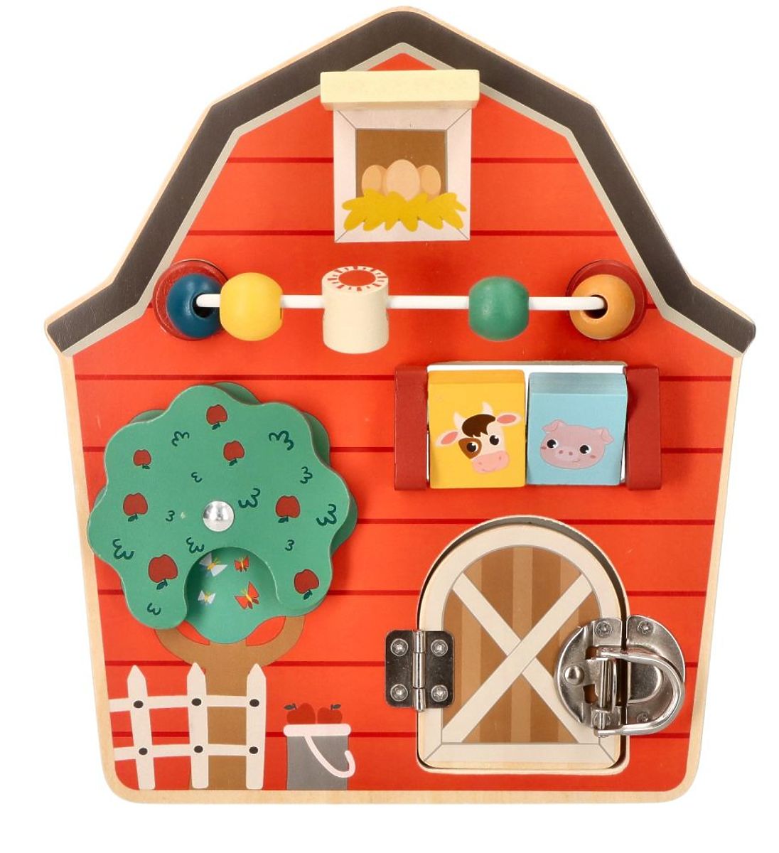 Privítajte malého farmára do sveta plného objavovania a zábavy s touto farebnou drevenou tabuľou v tvare stodoly. Táto interaktívna hračka je navrhnutá pre deti od 18 mesiacov, kombinuje vzdelávanie s hrou a podporuje rozvoj jemnej motoriky a zvedavosti.