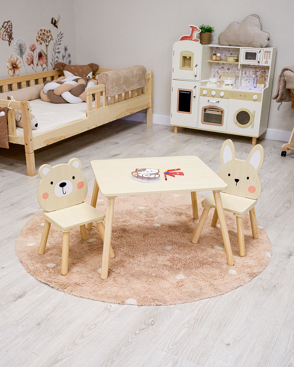 Dizajn s lesnými priateľmi – medvedík a zajačik rozžiaria detskú izbu a prinesú radosť pri každej hre.