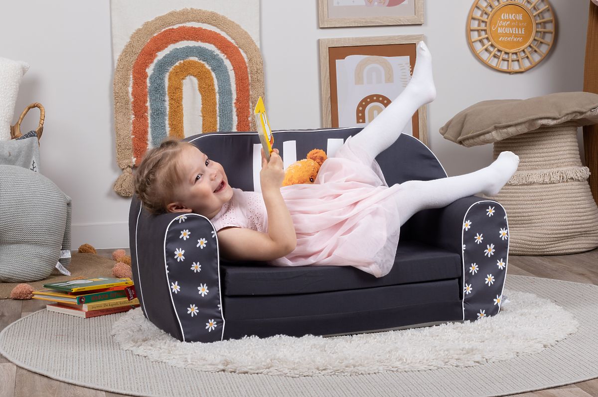 Snímateľný poťah z príjemnej a odolnej látky sa ľahko čistí, takže pohovka zostane vždy ako nová. Vďaka ľahkej konštrukcii ju deti ľahko premiestnia kamkoľvek chcú.